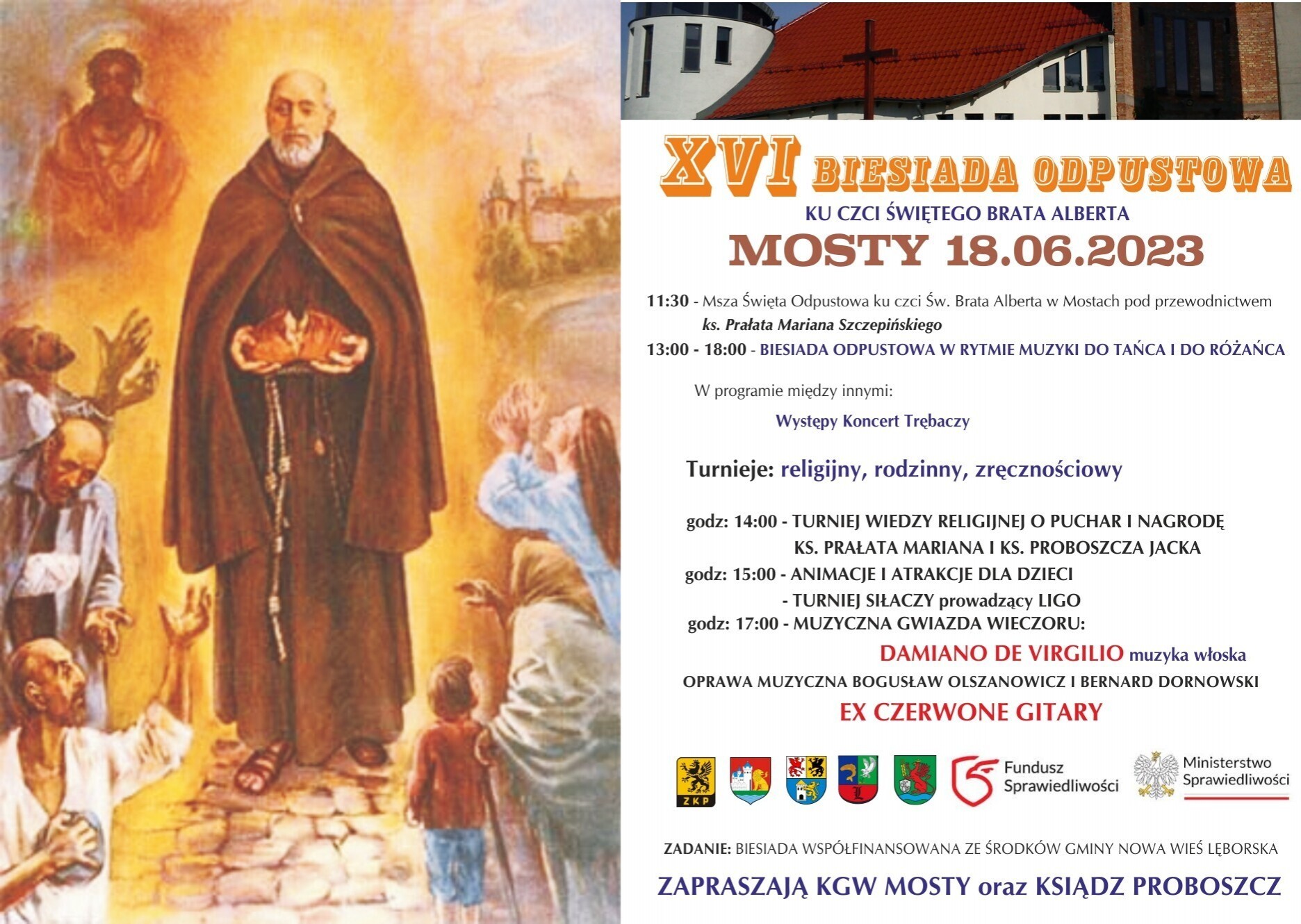 Proboszcz Parafii pw. św. Brata Alberta Chmielowskiego w Mostach i Koło Gospodyń Wiejskich Mosty zapraszają na biesiadę odpustową ku czci świętego Brata Alberta, która odbędzie się 18 czerwca (niedziela).