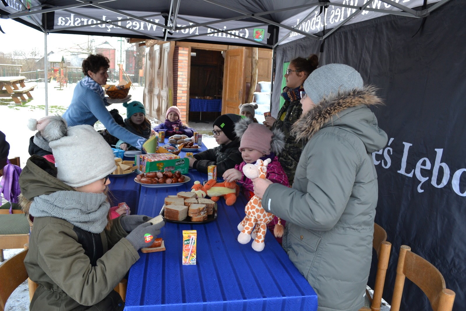 Na zakończenie ferii było ognisko, kiełbaski i zabawa na śniegu.