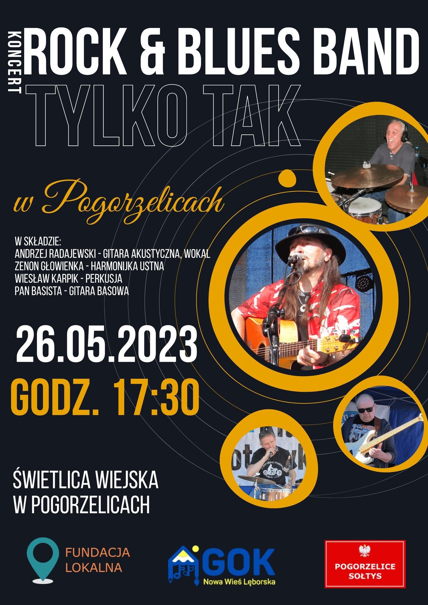 Na wyjątkowy koncert Rock & Blues Band TYLKO TAK specjalnie na Dzień Mamy zaprasza Sołectwo Pogorzelice. Zagra zespół w składzie: