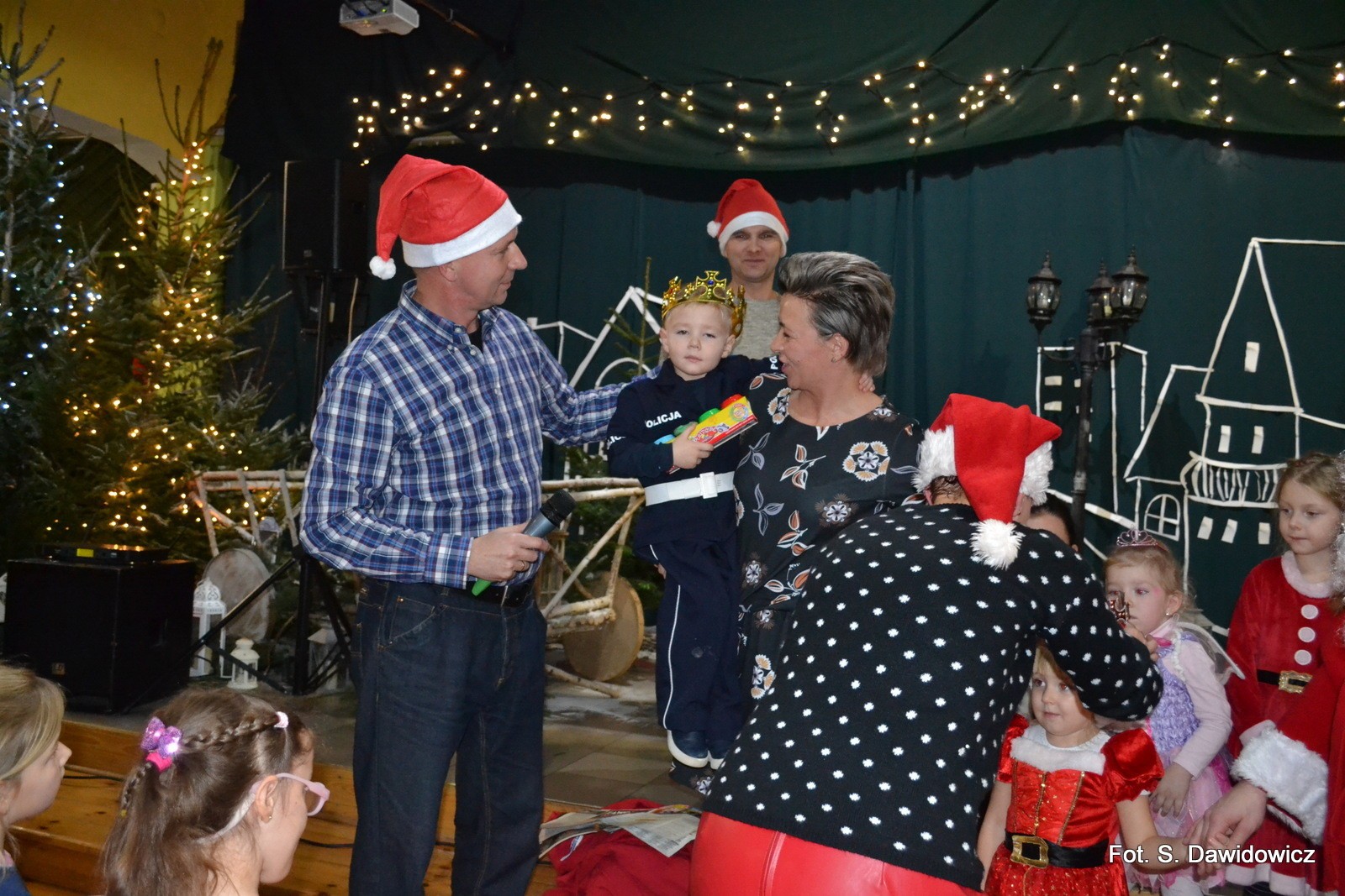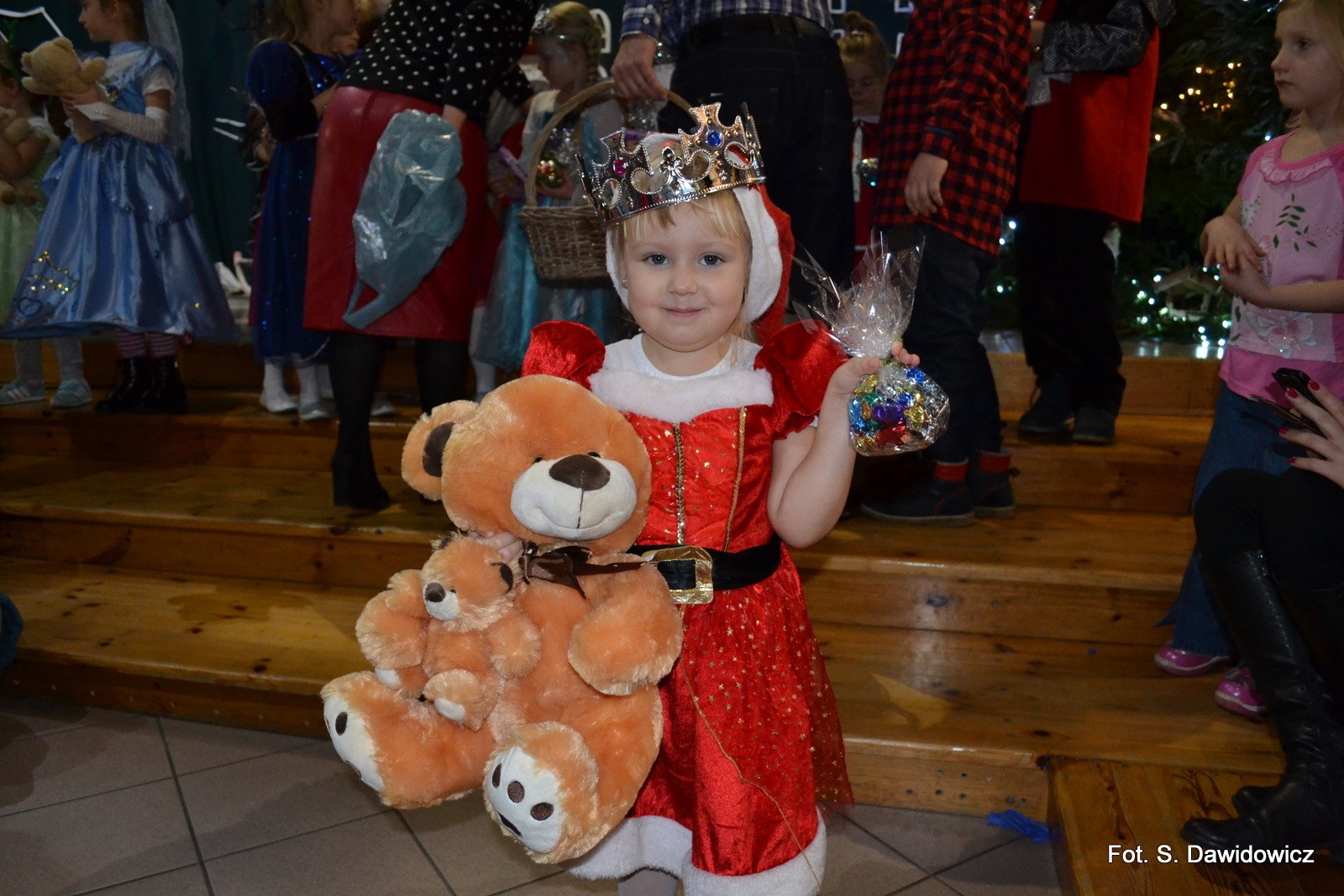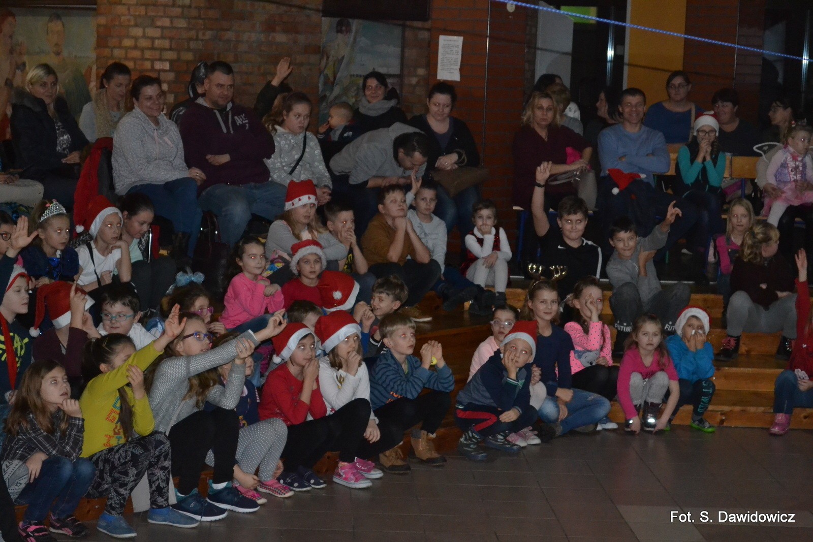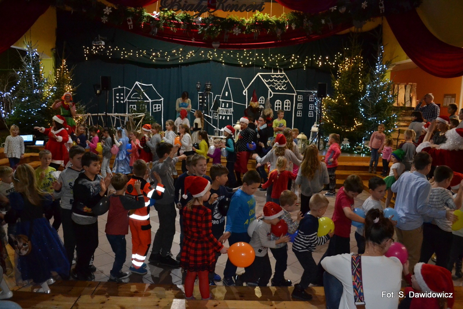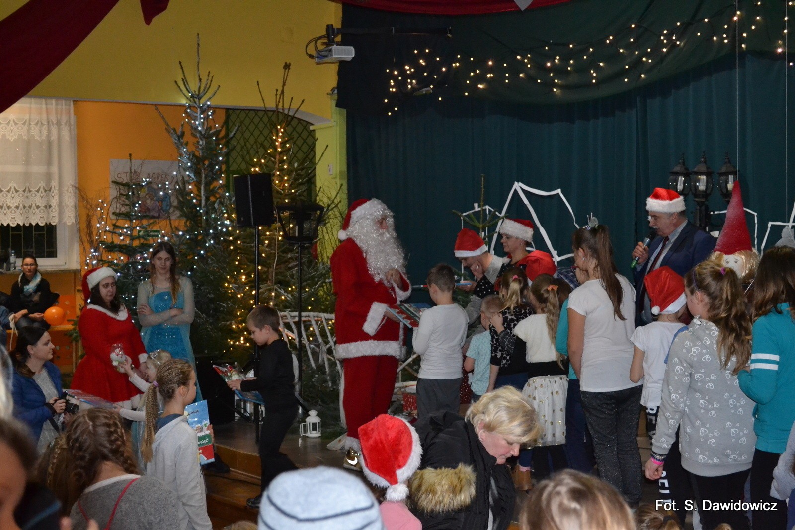 Porywające tańce i zabawy oraz konkursy dopełniły atmosfery radosnej zabawy. Mikołaj z Mikołajową, Elf z Wróżką pociągnęli ponad 150 dzieci do radosnych pląsów i podrygów. Podziękowania dla Dyrektor Grażyny Wójcik, Pana Wójta Ryszarda Wittke za wsparcie Naszej Zabawy Mikołajowej. Dziękujemy Wszystkim sponsorom i wolontariuszom oraz Działaczom z Gminnego Ośrodka Kultury i Szkoły Podstawowej.