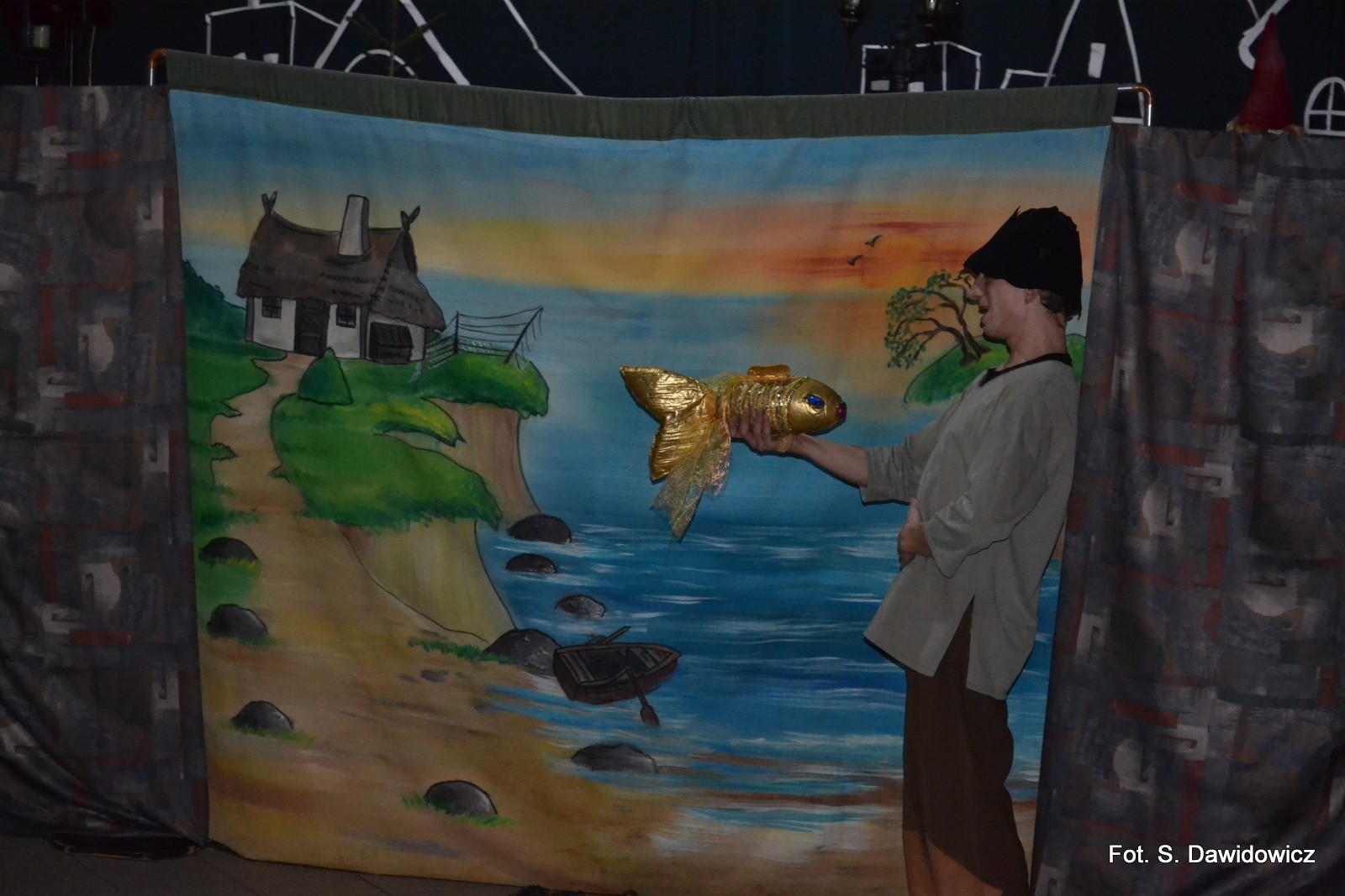 W pięknej scenografii wykonanej przez Szkołę Podstawową wystąpił teatr KRAK-ART z przedstawieniem o "Złotej Rybce".
