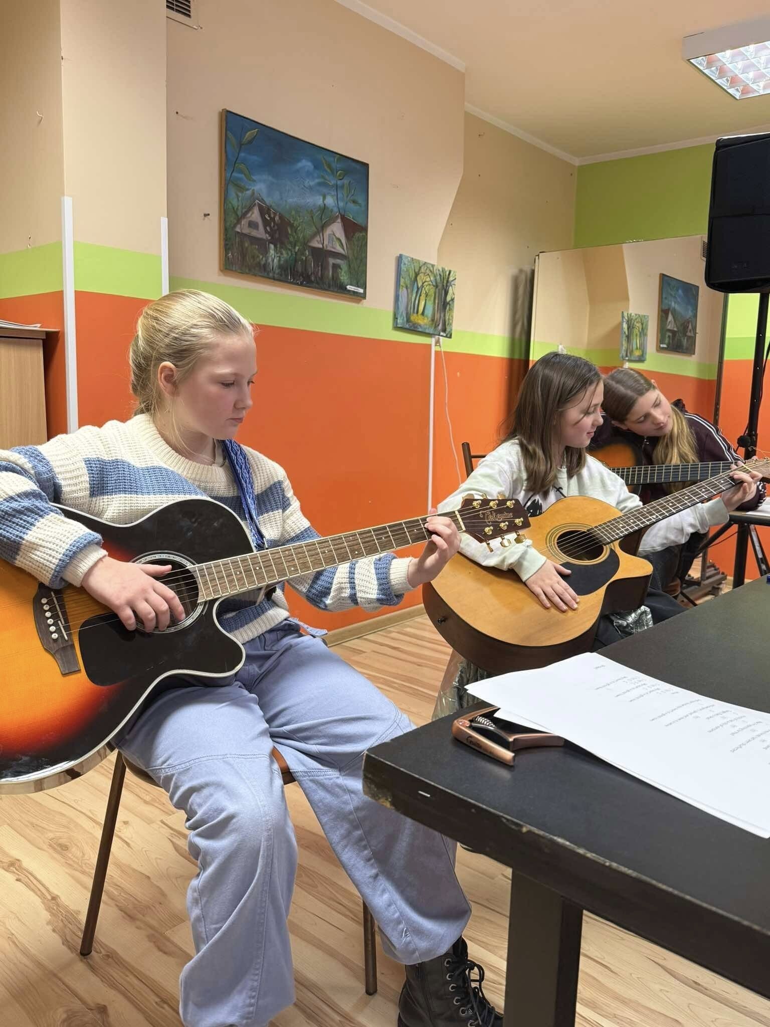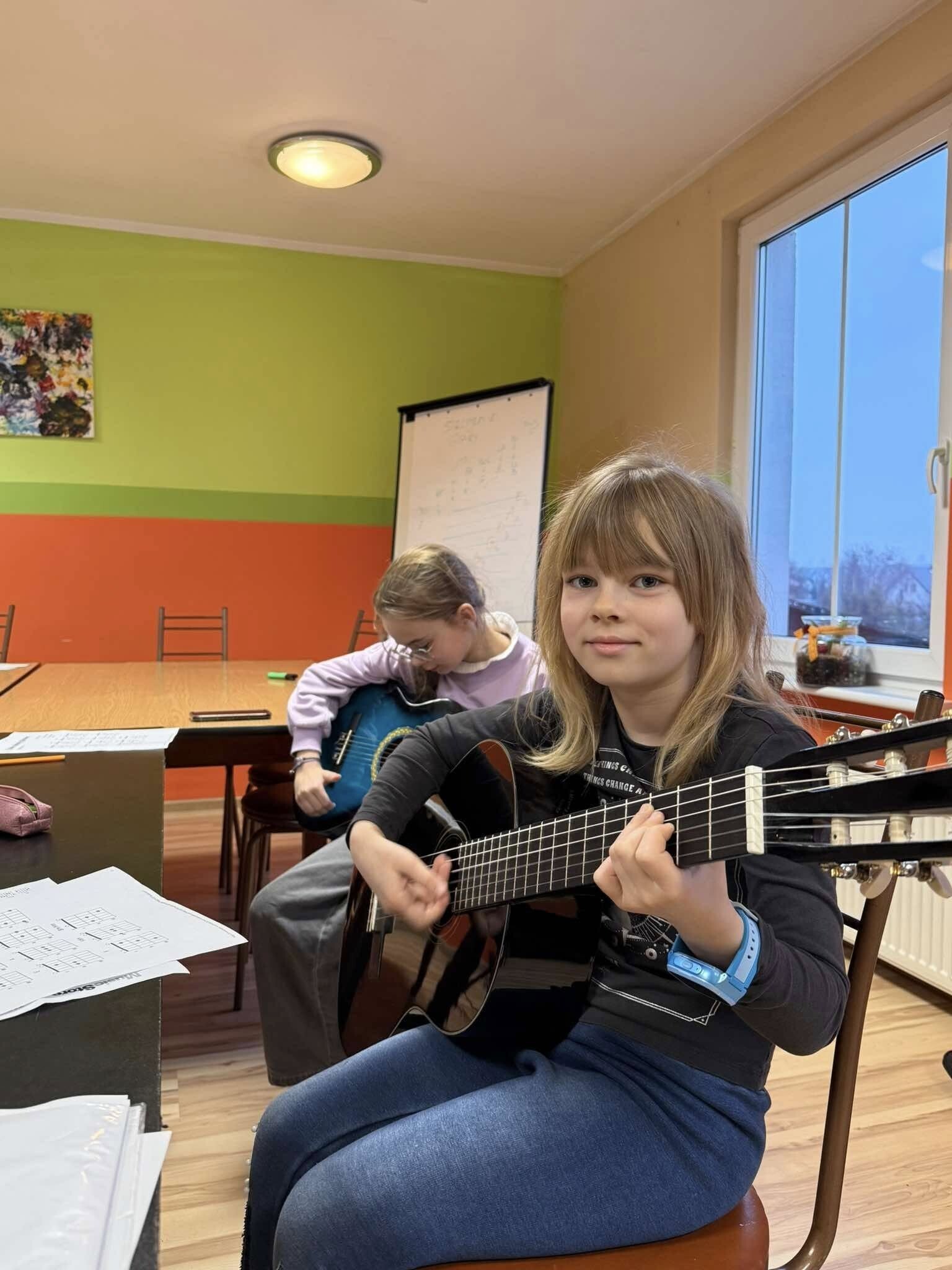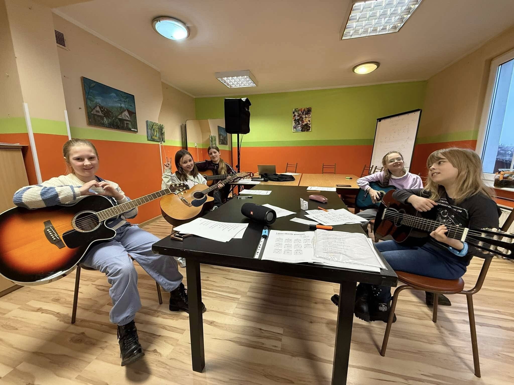 Dzieci rozpoczęły dziś również swoją przygodę z gitarą. Dowiedziały się jak z nią pracować, między innymi jak ją stroić i układać pierwsze chwyty. Zapowiada się nam zdolna grupa muzyków. Na kolejną muzyczną dawkę wrażeń zapraszamy już w czwartek