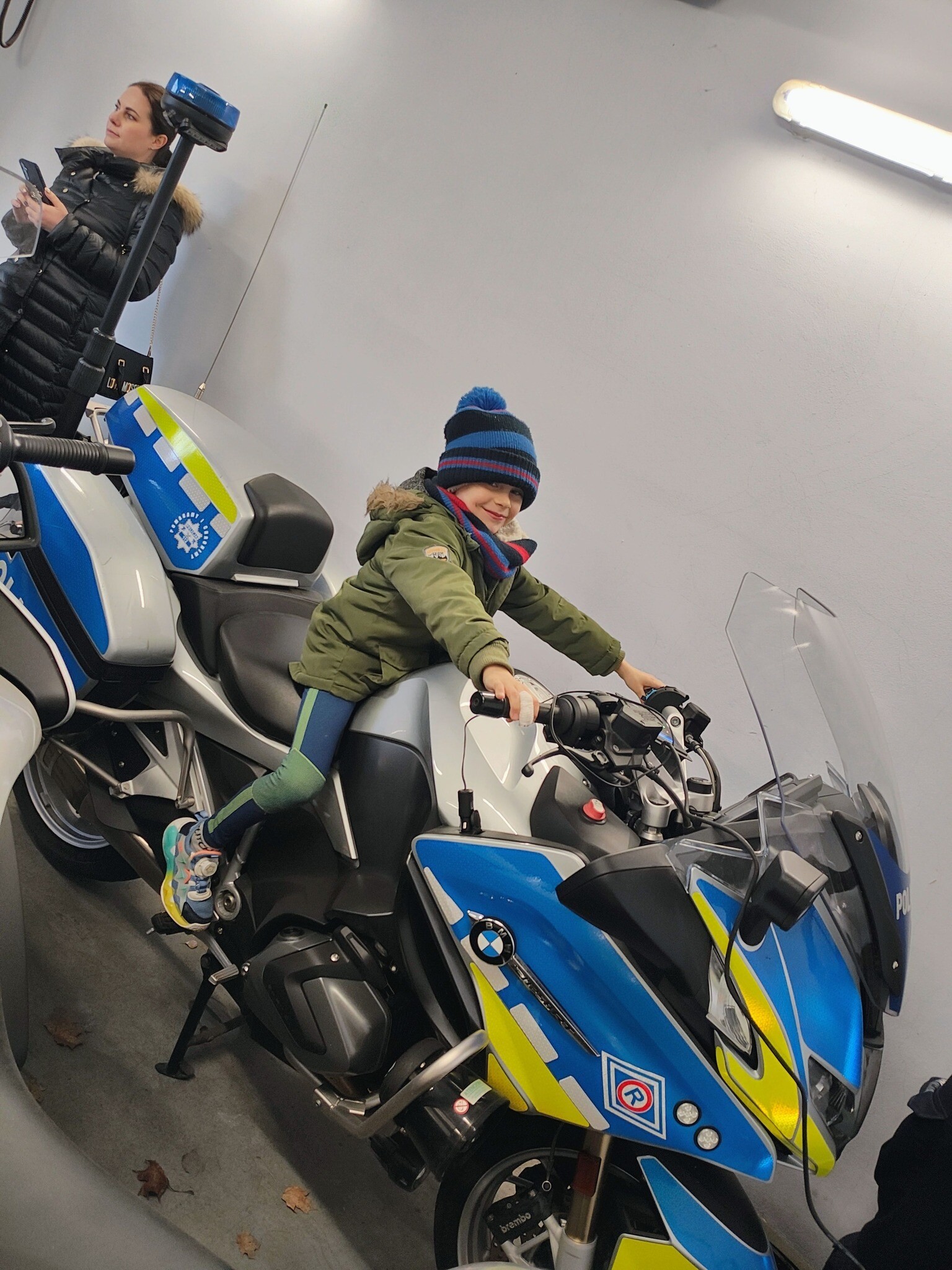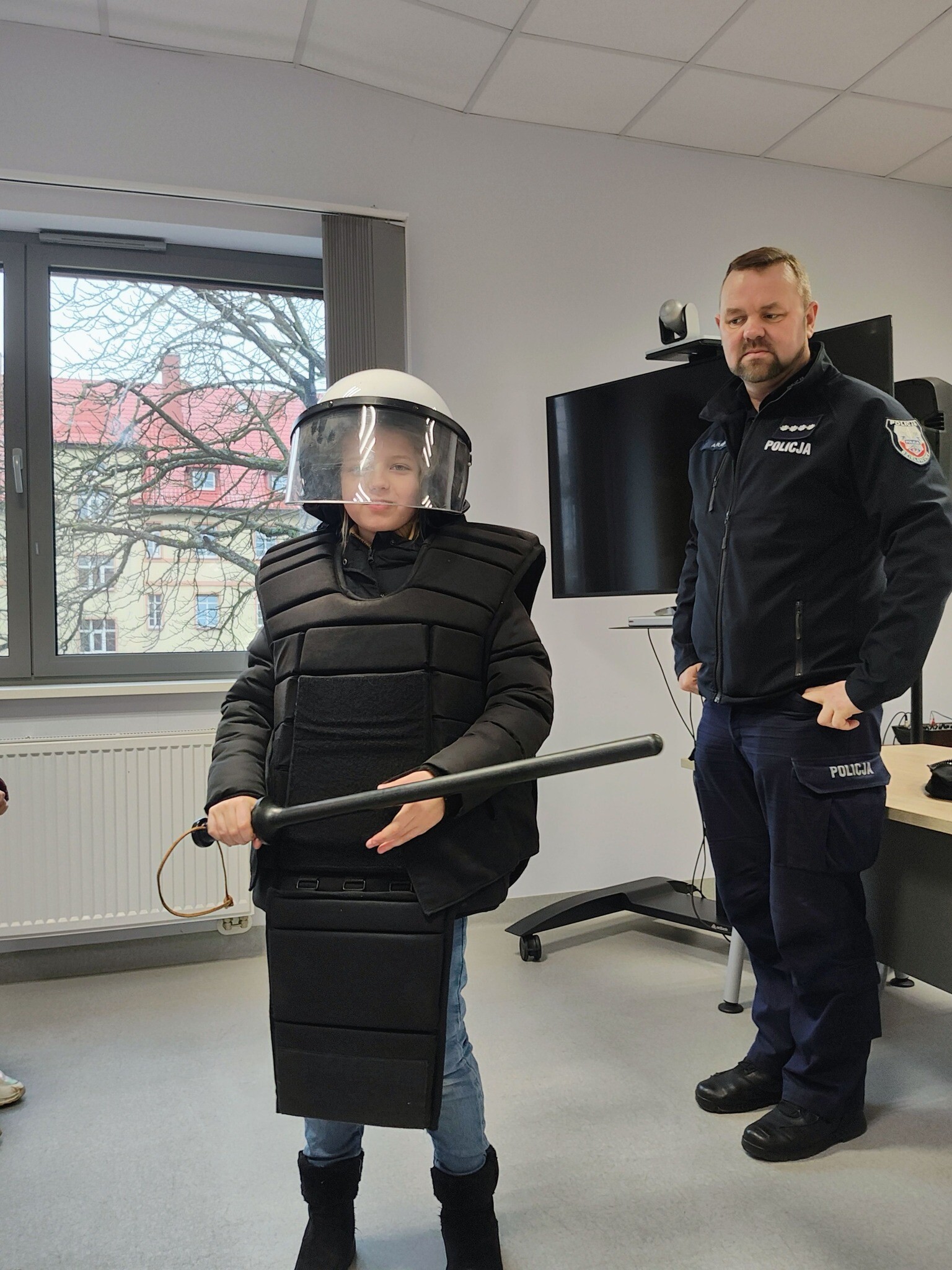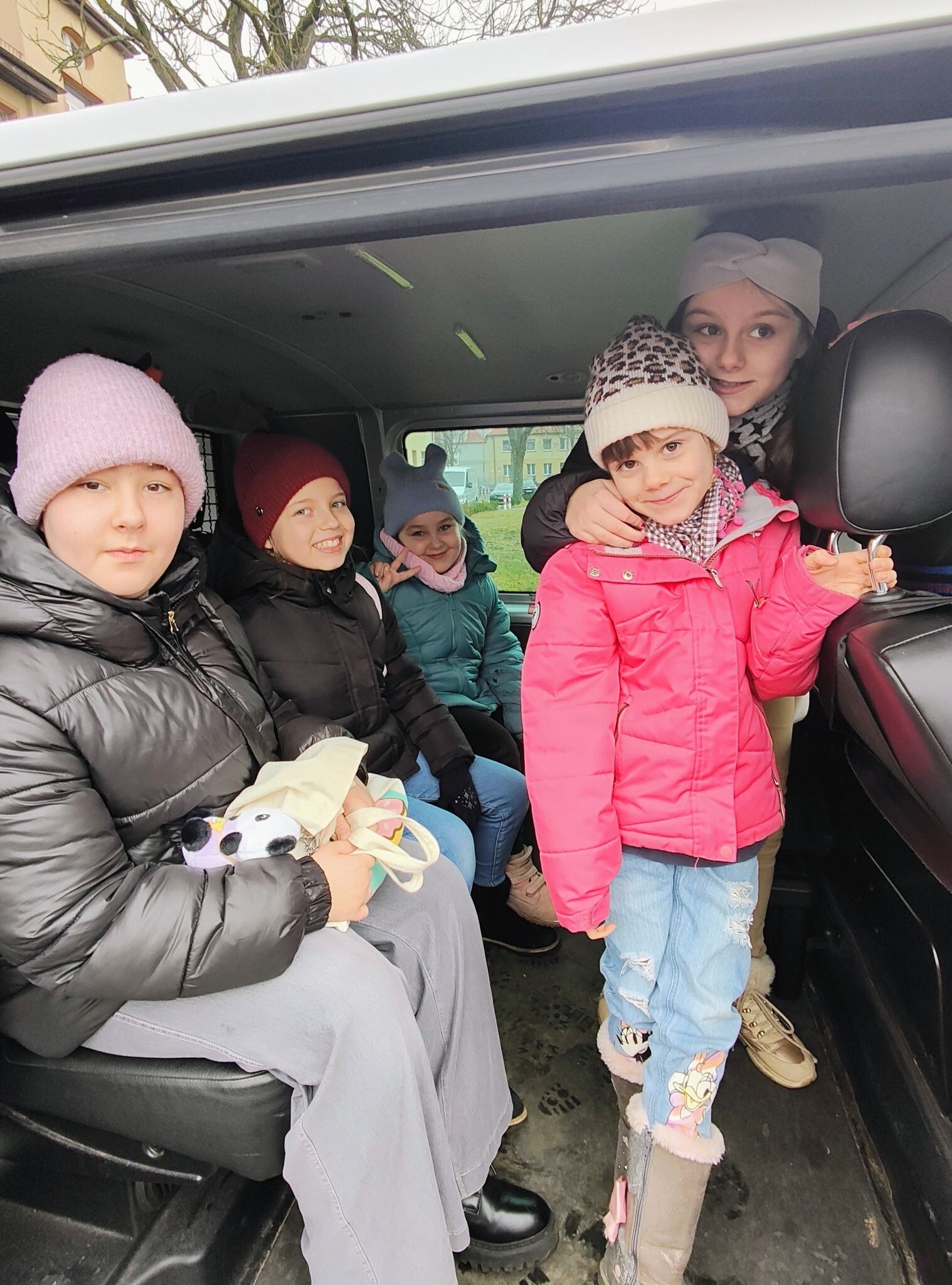 W ostatnim dniu ferii Pan Wojtek Kublik zabrał nas na Komendę Powiatową Policji w Lęborku Funkcjonariusze policji pokazali nam radiowóz którym przewożą podejrzanych oraz motor policyjny. Dzieci miały możliwość założenia ochronnego ubrania, które policjanci zakładają na siebie podczas różnych akcji policyjnych. Widzieliśmy także celę więzienną oraz dyżurkę. Bardzo dziękujemy za możliwość zwiedzania. Na koniec ferii zjedliśmy pyszną pizzę.