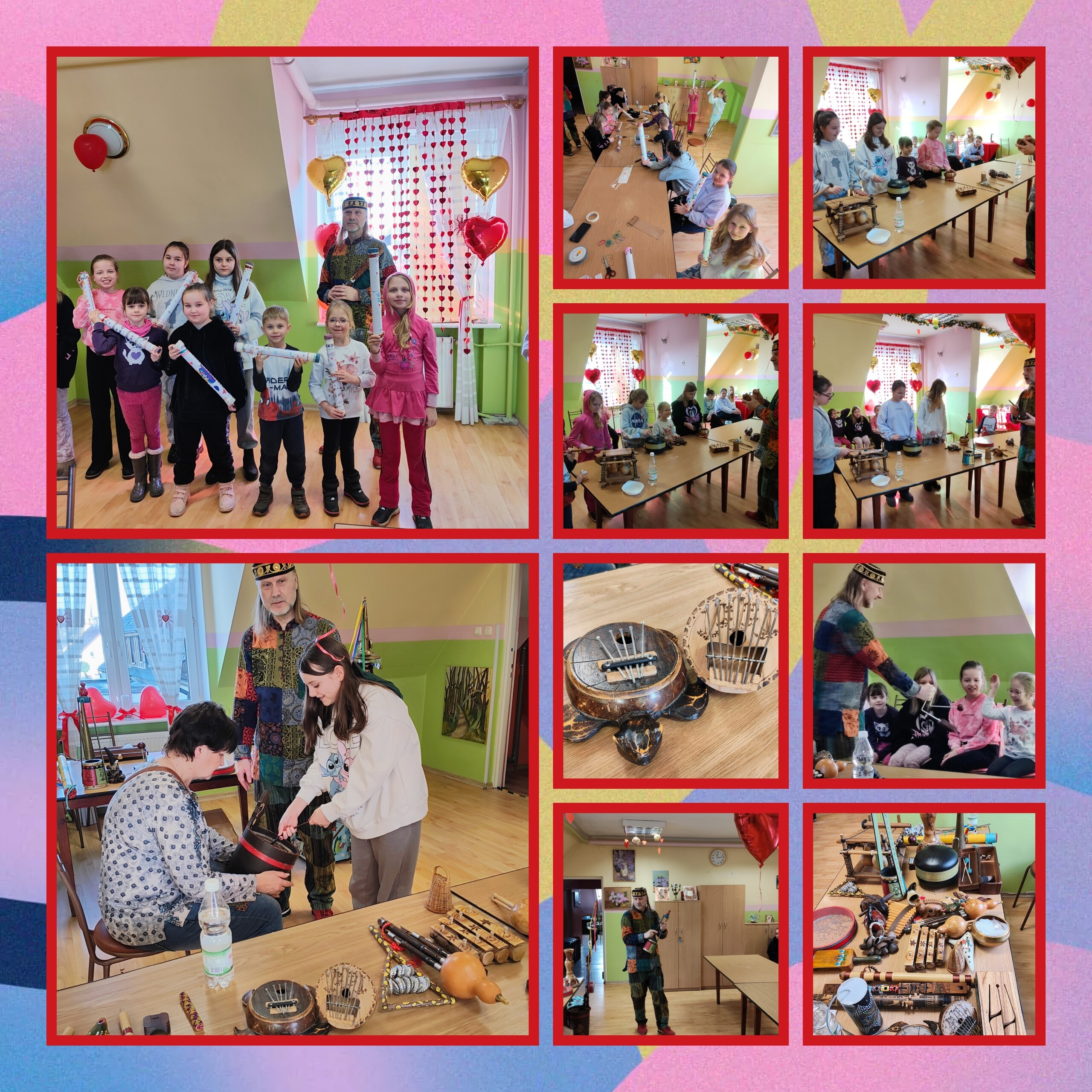 "Czarodziej Dźwięku" bo tak siebie przedstawia pokazał dzieciom instrumenty ludowe i etniczne z różnych stron świata. Mogliśmy zapoznać się z instrumentami wydającymi dźwięki wiatru, burzy czy padającego deszczu. Zgromadzone instrumenty pochodzą z takich krajów jak: Austria, Peru, Indonezja czy Meksyk oraz wiele innych krajów. Na koniec spotkania dzieci wykonały własnoręcznie Tubę deszczową.