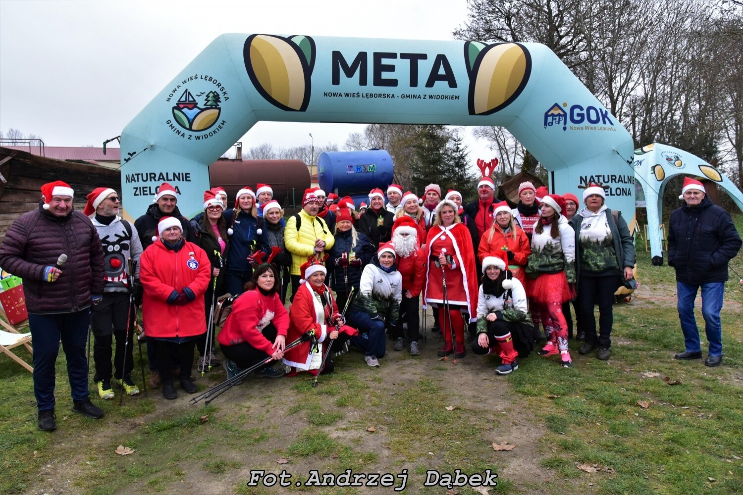 A tam czekały na Nas parowane ziemniaki ze śledzikiem. Otrzymaliśmy nagrody rozdawane przez władze samorządowe Gminy Nowa Wieś Lęborska, Miasta Lęborka i Powiatu Lęborskiego w formie Kiermaszu Mikołajowego, „Certyfikat Mikołaja i Śnieżynki Nordic Walking 2022” . Co najważniejsze dostaliśmy gratis dużo radosnych doznań w otoczeniu trzydziestu pomników przyrody. Kto mógł posmakował produktu turystycznego polsko - szwedzkiego!!! "przecierkę jabłkową z cynamonem???".