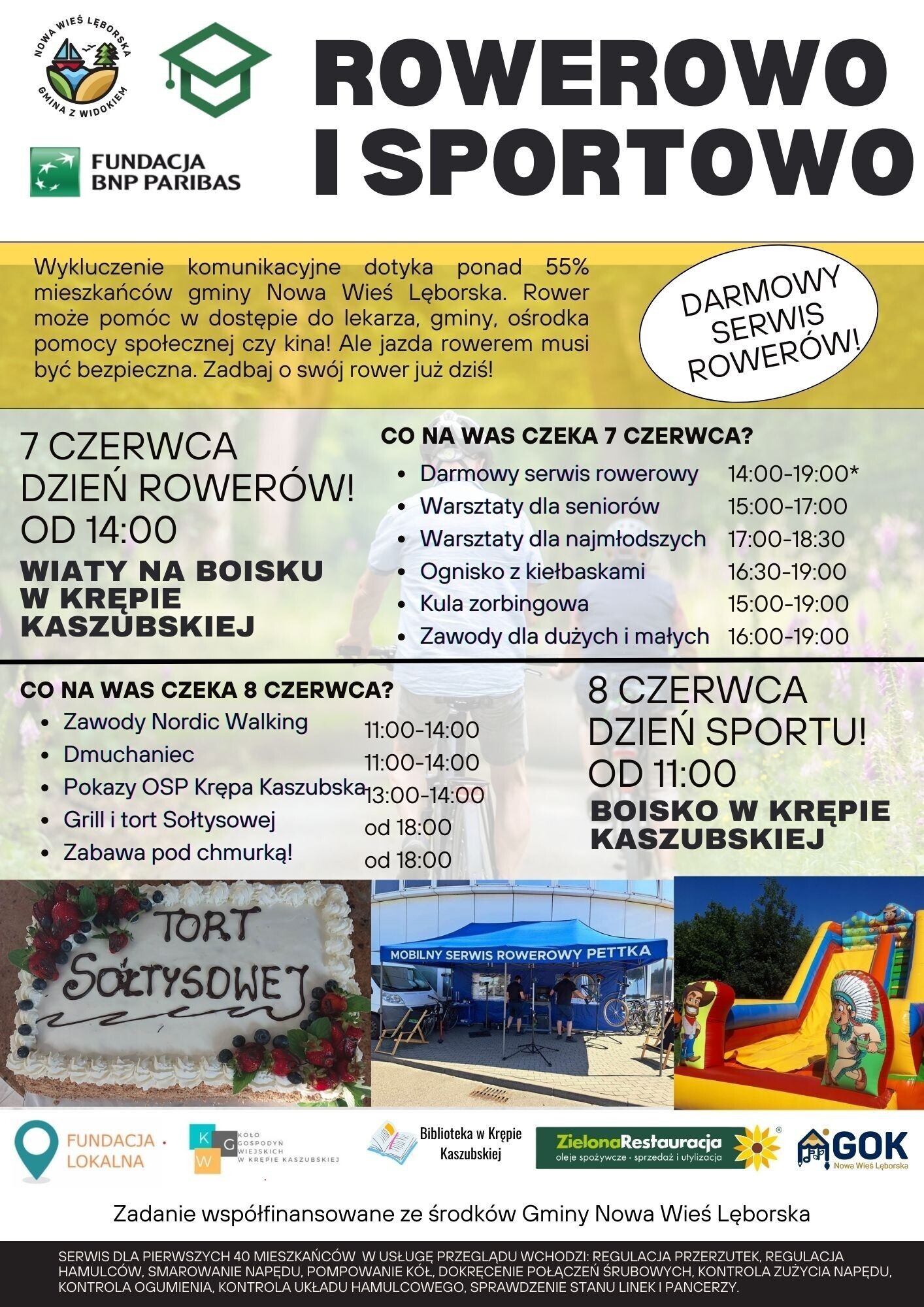 Krępa Kaszubska zaprasza wszystkich do siebie w dniach 7 i 8 czerwca br. W tych dniach będzie sportowo i rowerowo.