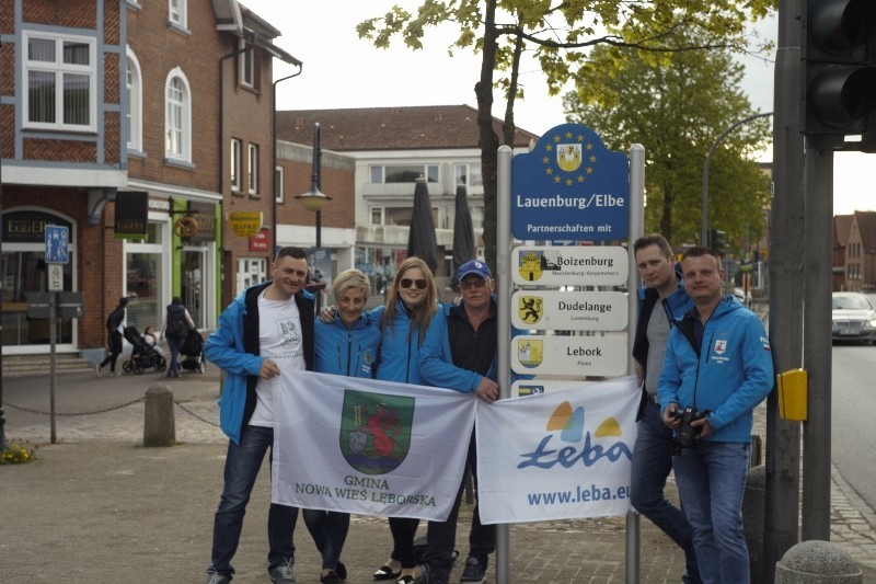 W imieniu Burmistrza Miasta Łeby na ręce Burmistrza miasta Hohnstorf przekazaliśmy serdeczne podziękowania za organizację tego spotkania z naszymi cyklistami, zaproszenie na Święto Łeby oraz wręczyliśmy obraz na płótnie ze zdjęciami Łeby oraz Nowej Wsi Lęborskiej. Asystent Burmistrza podziękował również Panu Egonowi Ejowskiemu, za budowania dobrego wizerunku miasta Łeby poza granicami Polski i ciągle jest bliska jego sercu. Podziękował również miejscowemu komendantowi Straży Pożarnej za wspieranie łebskiej jednostki Ochotniczej Straży Pożarnej i przekazanie im w zeszłych latach wozu bojowego oraz łodzi. W obu miejscowościach zostawiliśmy także broszury Łeby i Nordy.