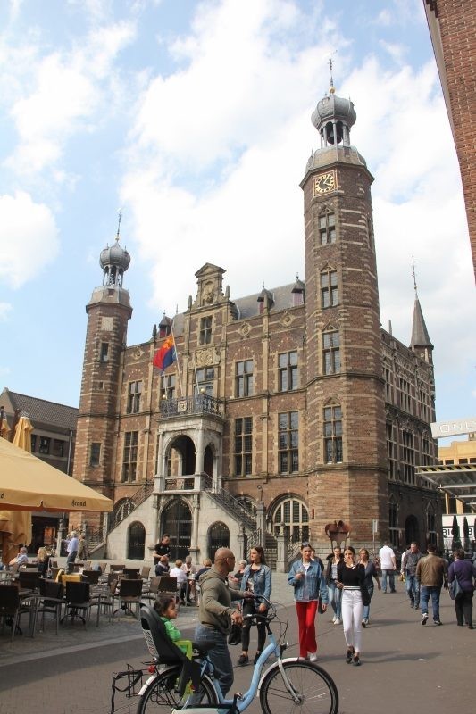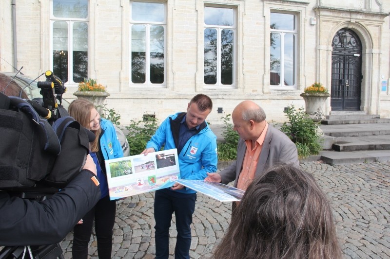 Po opuszczeniu Essen grupa Wojtka pojechała w kierunku naszego miasta partnerskiego Jodoigne. W tym czasie „team promocyjny” zajechał do miejscowości Kerken aby zatankować samochód, gdyż od granicy holenderskiej dzieliło nas już niespełna 20 kilometrów. Po „zalaniu” auta po sam korek odwiedziliśmy miejscowego Burmistrza Pana – Dirk’a Mocking. Jak mu opowiedzieliśmy o naszym rajdzie,nie mógł uwierzyć, że rowerzyści pokonują średnio 150 kilometrów dziennie aby promować region i zbierać pieniądze dla 6-letniego Franciszka chorego na mukowiscydozę. Również w tej gminie obiecali pomóc w zbiórce datków. Zostawiliśmy im namiary na fundację MATIO, do której należy Franek. Następnie spotkaliśmy się z naszymi drogimi rowerzystami już po stronie holenderskiej w miejscowości Venlo. Tam na uroczej starówce w „Paradiese Schnitzel” zjedliśmy obiad aby ruszyć w dalszą drogę.