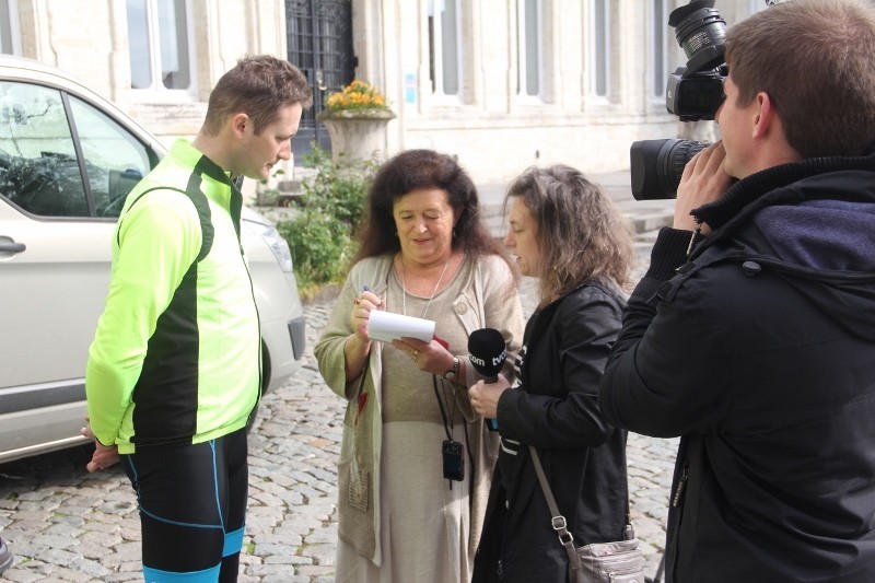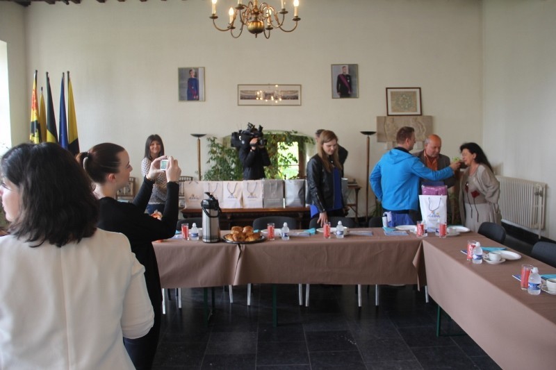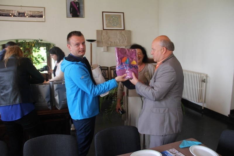 Późnym wieczorem przekroczyliśmy rogatki miasta i gminy Jodoigne. W miejscu noclegu zostaliśmy gorąco powitani przez gospodarzy kwatery, w której to mieliśmy nocleg, Pana Gilles’a (przedstawiciela władz miasta) oraz przez sympatyczną Panią Basię (mieszkankę Jodoigne z pochodzenia Polkę). Po zjedzeniu „belgijskiej” kolacji z racji późnej godziny udaliśmy się spać, aby nabrać sił przed kolejnym dniem.Następny dzień, a zarazem ostatni dzień naszego rajdu rozpoczął się od porannego spotkania z pełniącym obowiązki Burmistrza Miasta Jodoigne Panem – MEURICE Jean-Luc, radnymi, a także z lokalną prasą. W rozmowie po francusku z władzami miasta i mediami wspierała nas Pani Ania Kos. Spotkanie odbyło się w Urzędzie Miasta Jodoigne mieszczącym się w Pałacyku, który trzeba było dostosować do potrzeb administracyjnych. Region znany jest z hodowli specjalnej krzyżówki świń, zwanych świniami z „Pietrain”. Miasto zamieszkuje ponad 14 tysięcy osób. Jodoigne zwane też jest „miastem szkół”. Gdyż na jak takie małe miasteczko znajduje się tu wiele szkół i internatów dla uczniów i studentów.Ale wróćmy do relacji ze spotkania. Na wstępie powitał nas p.o. Burmistrza Miasta Jogoigne oraz radni. Przekazaliśmy sobie drobne upominki, wymieniliśmy się flagami naszych miast. Barwy miasta to żółty i czarny, tak więc nie mogło ich zabraknąć na oficjalnym herbie miasta jak i fladze. Burmistrz Miasta Łeby osobiście przy pomocy nowych technologii złożył serdeczne pozdrowienia obecnym na sali oraz pogratulował cyklistom pomyślnego ukończenia rajdu. Ponadto wręczyliśmy Burmistrzowi Jodoigne na pamiątkę naszego przyjazdu dwa obrazy. Obaj włodarze mają głęboką nadzieję, że dzięki inicjatywie tego rajdu dojdzie do jeszcze owocniejszej współpracy pomiędzy obiema gminami.Po spotkaniu odwiedziliśmy także lokalne centrum informacji turystycznej gdzie pozostawiliśmy nasze materiały promocyjne. Następnie wraz z przewodnikiem udaliśmy się na historyczną wycieczkę uliczkami miasta.Trzy godziny później musieliśmy już opuszczać naszych belgijskich przyjaciół gdyż byliśmy już umówieni na spotkanie w Parlamencie Europejskim, po którym oprowadziła nas Pani Magdalena Rymkiewicz z biura europosła – Jarosława Wałęsy. Za co serdecznie dziękujemy.