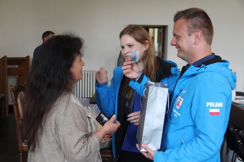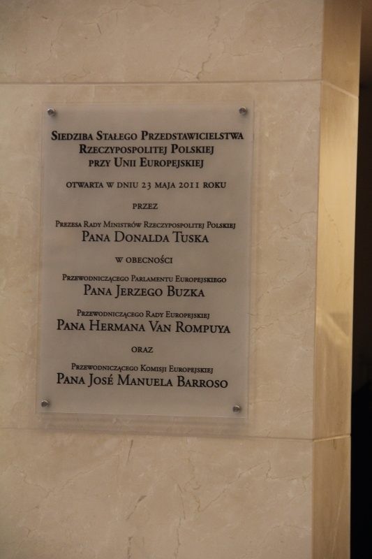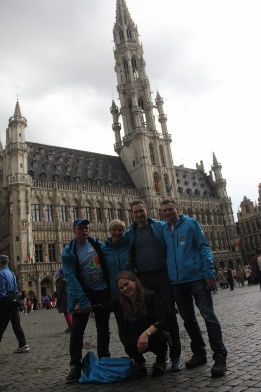 Po godzinnej przechadzce udaliśmy się do siedziby Stałego Przedstawicielstwa RP przy Unii Europejskiej w Brukseli. Tam na wejściu przywitały nas bardzo serdecznie Panie pracujące na co dzień w działaniach związanych z obsługą Ambasady Polskiej w Brukseli oraz delegacji rządowych z kraju. Zasiedliśmy wszyscy przy „okrągłym stole” i przy kawie i herbacie opowiedzieliśmy o celach rajdu jak również zachęciliśmy do przyjazdu do obu gmin. Na koniec wykonaliśmy pamiątkowe zdjęcia i wyruszyliśmy na wieczorne zwiedzanie starówki w Brukseli.