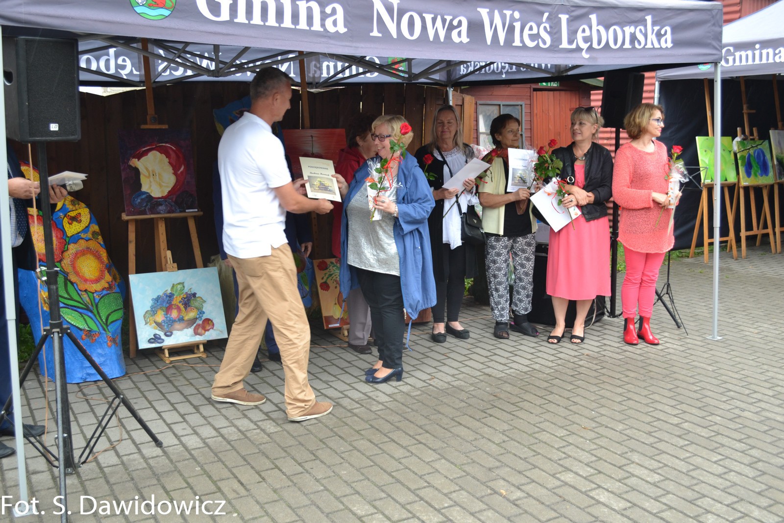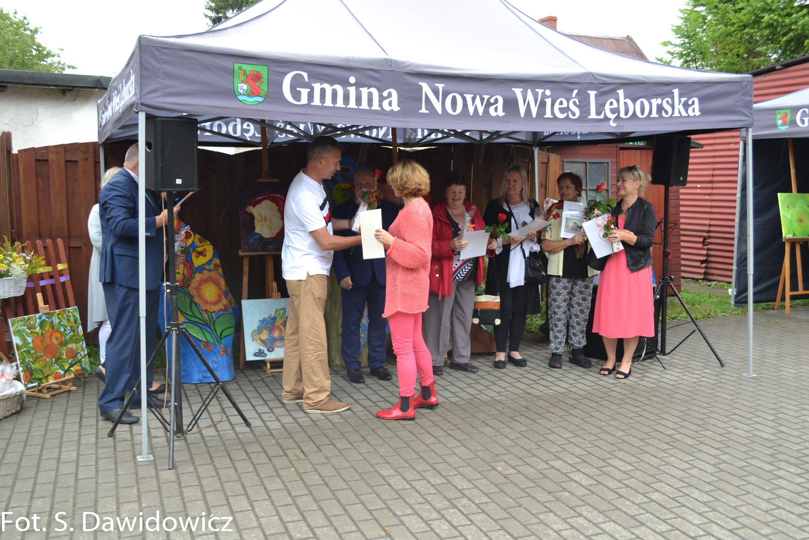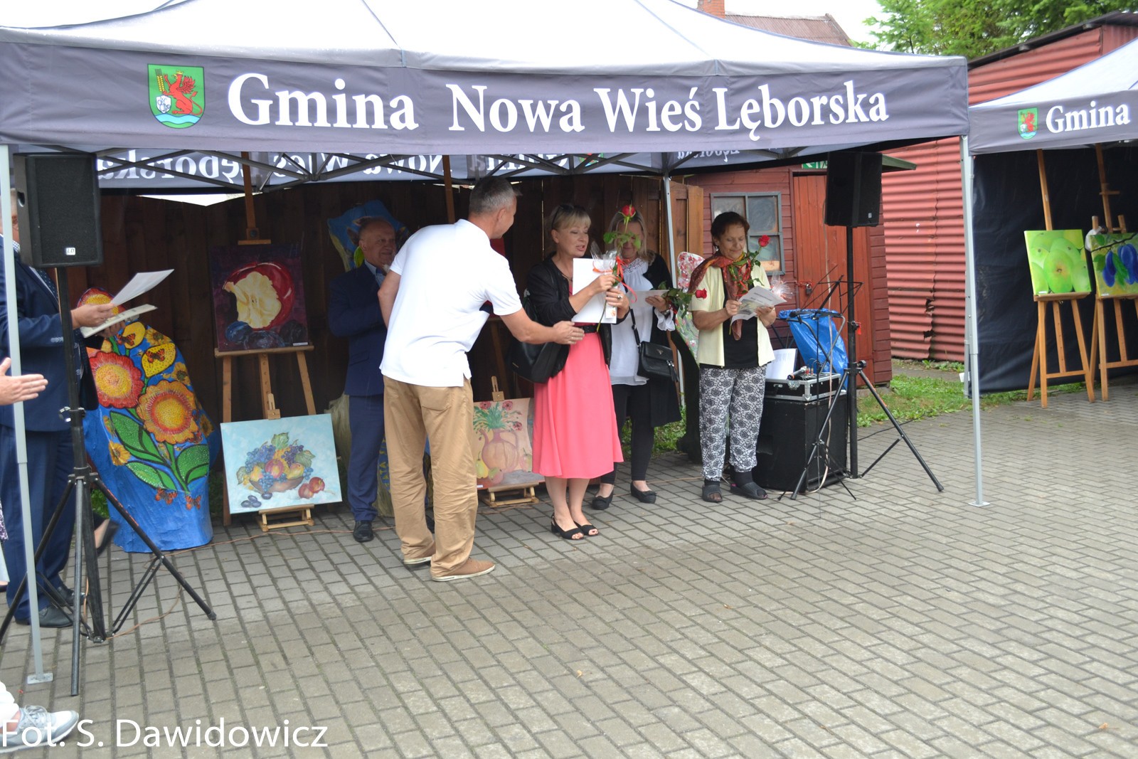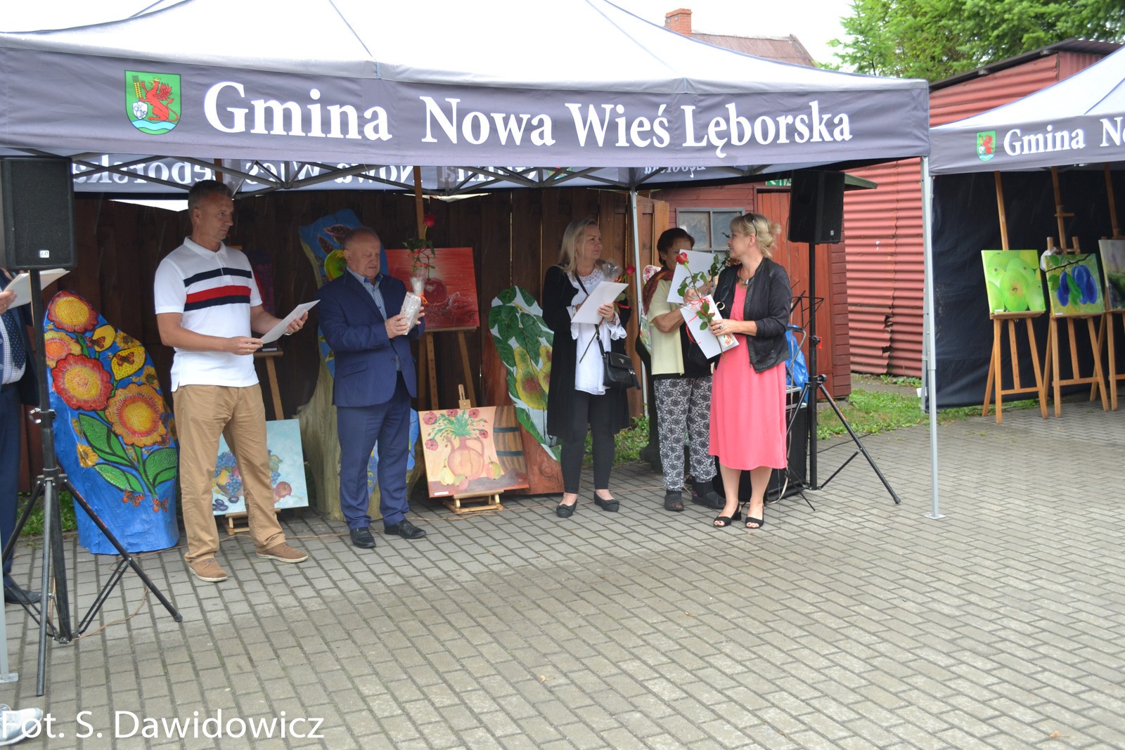W dniu 13 VII 2018 w Gminnym Ośrodku Kultury w Nowej Wsi Lęborskiej odbył się wernisaż poplenerowy. To już XII plener zorganizowany przez Stanisławę Dawidowicz plastyka i animatora kultury. Tematem tegorocznego pleneru były „owoce”. W plenerze udział wzięło 22 twórców a powstało 30 prac. Uczestnicy z rąk Pana Wójta Ryszarda Wittke, Dyrektora GOK Krzysztofa Pruszaka, Sołtysa Marka Baranowskiego otrzymali podziękowania oraz symboliczne róże i upominki. Niespodziankę dla uczestników pleneru oraz wszystkich gości przygotowała Pani radna Renata Palczewska fundując tort w podziękowaniu artystą za ich wkład w promocję gminy Nowa Wieś Lęborska. Milą niespodzianką był też występ wokalny Pani Iwony Juchniewicz.