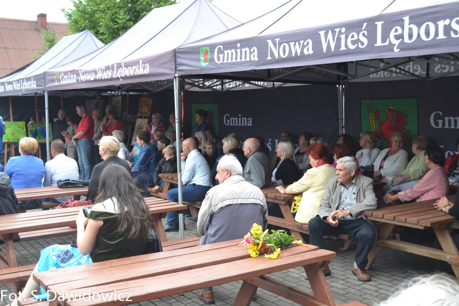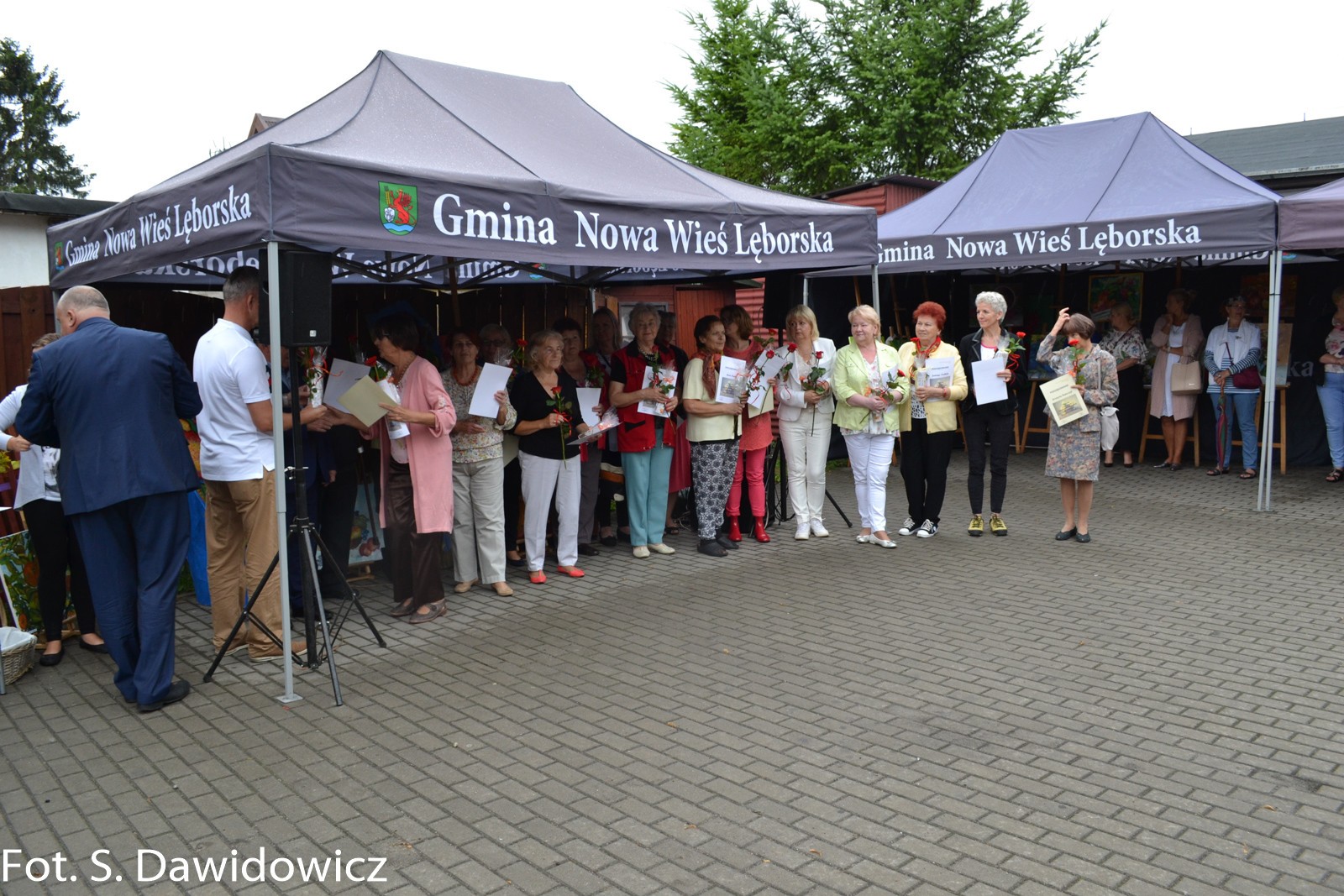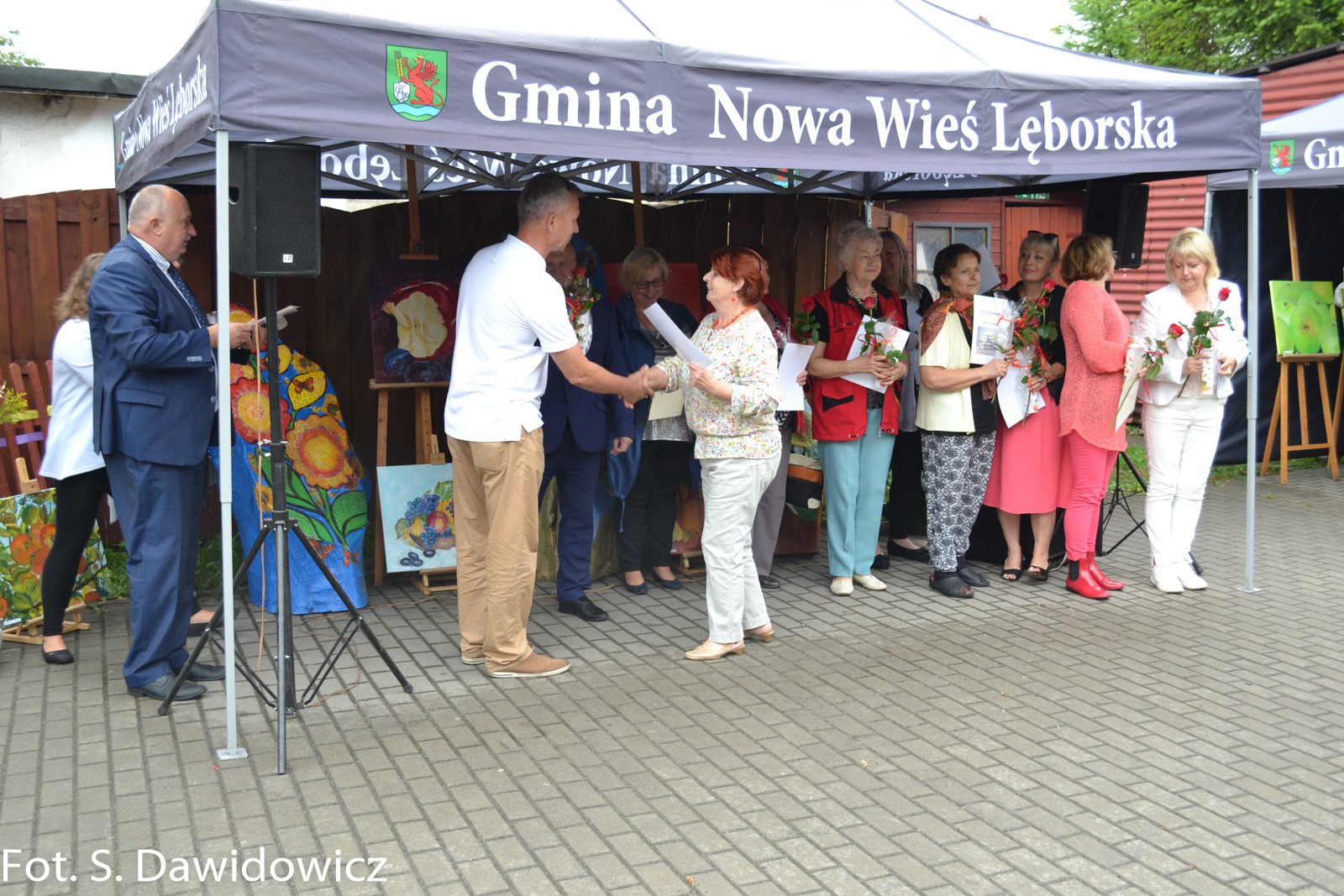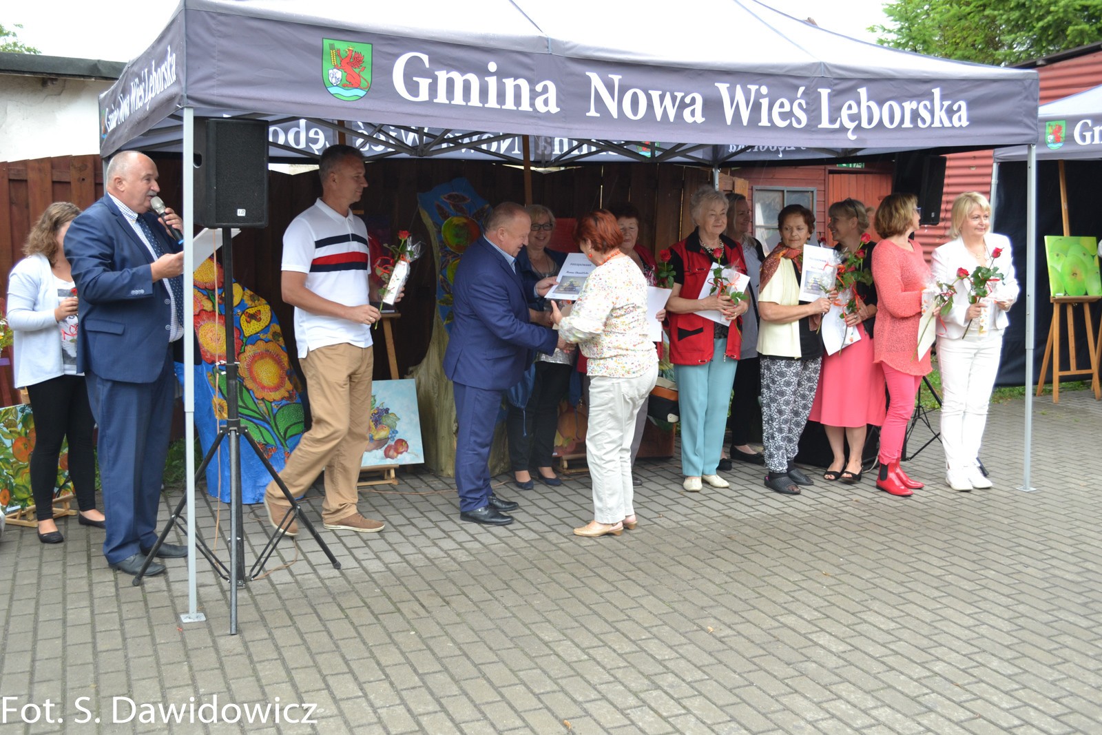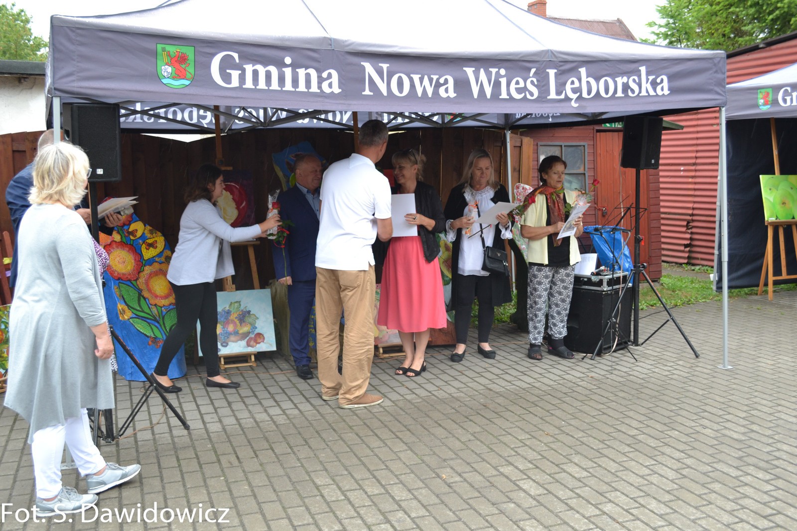 W dniu 13 VII 2018 w Gminnym Ośrodku Kultury w Nowej Wsi Lęborskiej odbył się wernisaż poplenerowy. To już XII plener zorganizowany przez Stanisławę Dawidowicz plastyka i animatora kultury. Tematem tegorocznego pleneru były „owoce”. W plenerze udział wzięło 22 twórców a powstało 30 prac. Uczestnicy z rąk Pana Wójta Ryszarda Wittke, Dyrektora GOK Krzysztofa Pruszaka, Sołtysa Marka Baranowskiego otrzymali podziękowania oraz symboliczne róże i upominki. Niespodziankę dla uczestników pleneru oraz wszystkich gości przygotowała Pani radna Renata Palczewska fundując tort w podziękowaniu artystą za ich wkład w promocję gminy Nowa Wieś Lęborska. Milą niespodzianką był też występ wokalny Pani Iwony Juchniewicz.