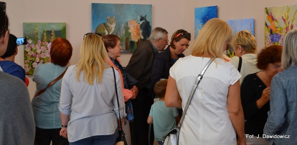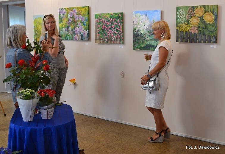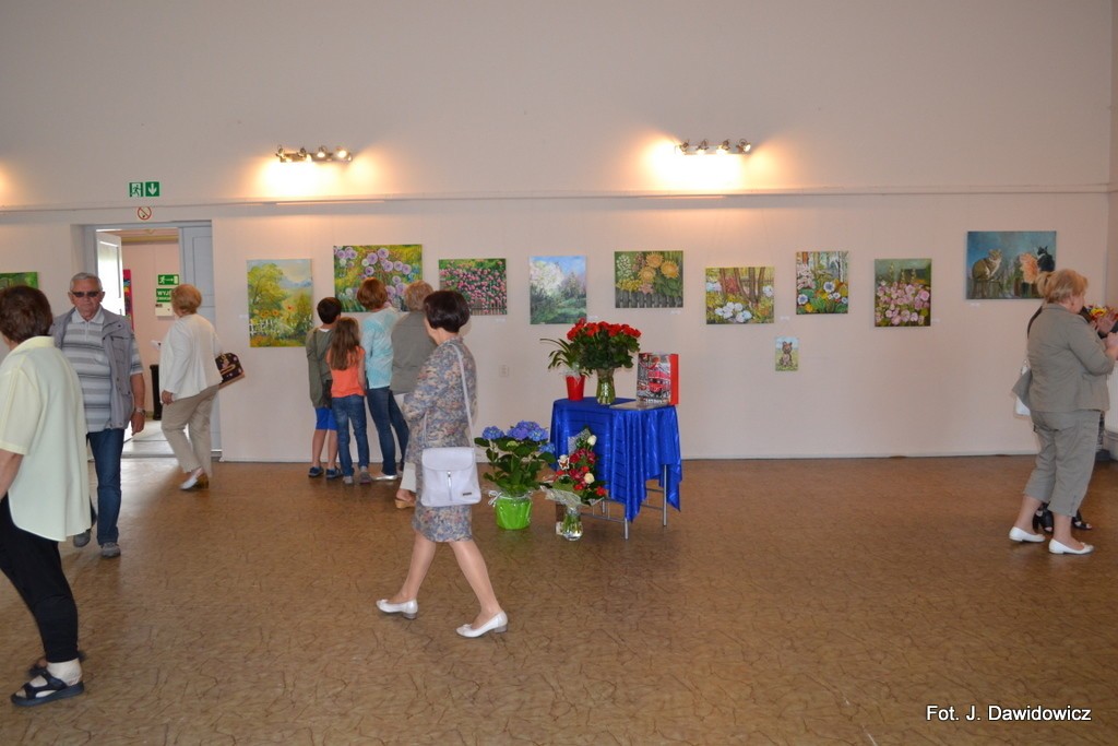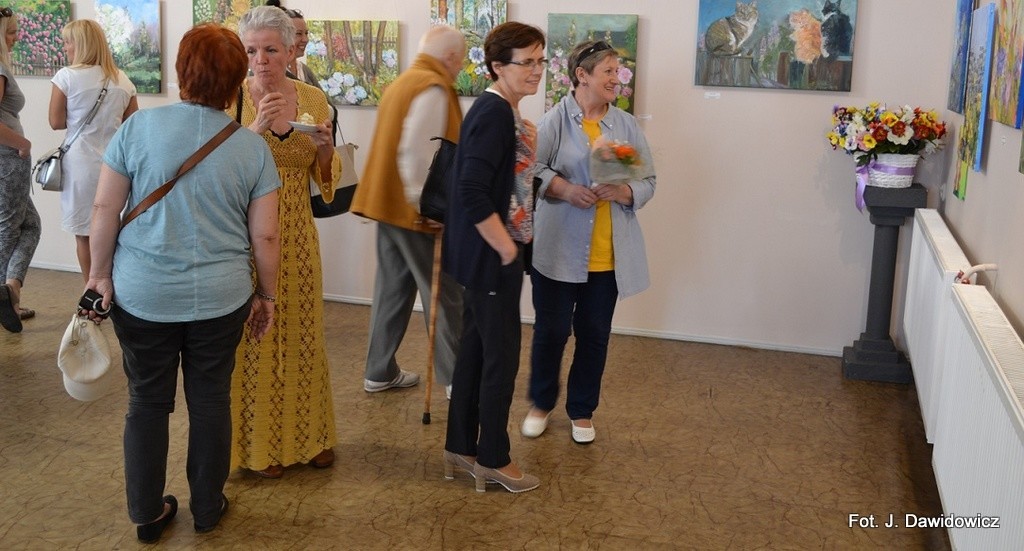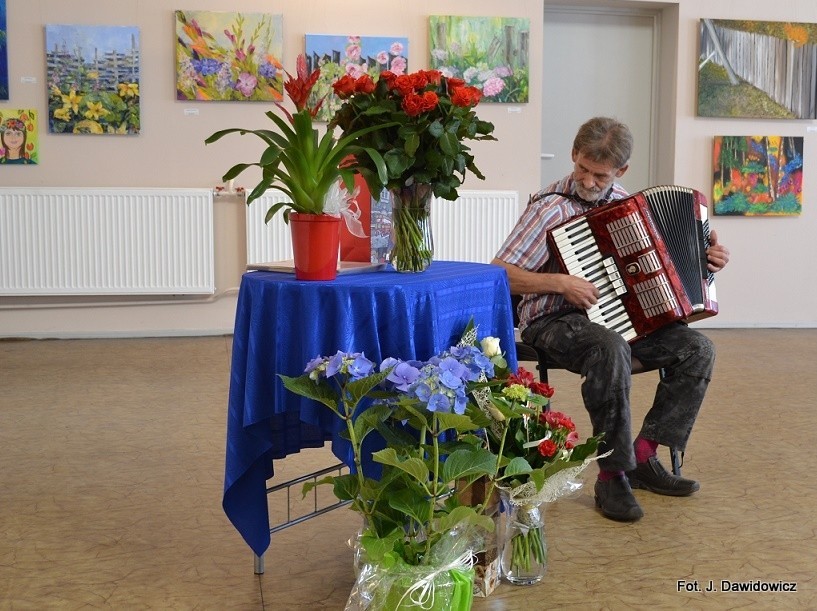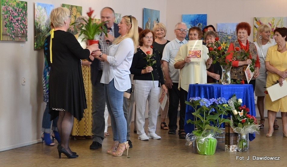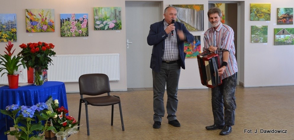 "Wernisaż w GOK w Nowej Wsi Lęborskiej w miniony piątek był jak zwykle bardzo udany, zarówno z uwagi na gości, którzy dopisali, artystów, którzy stawili się prawie w komplecie, popis akordeonisty, czas na wręczanie dyplomów i kwiatów, życzenia, bogaty słodki bufet, a przede wszystkim na samą ekspozycję prac poplenerowych.