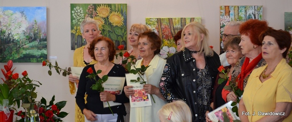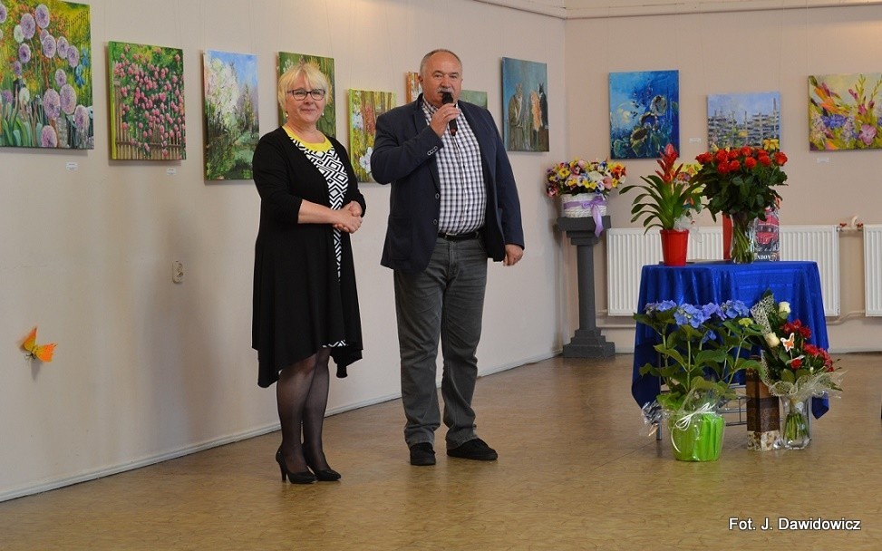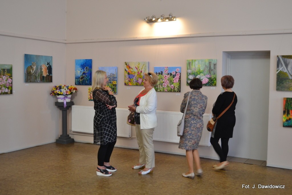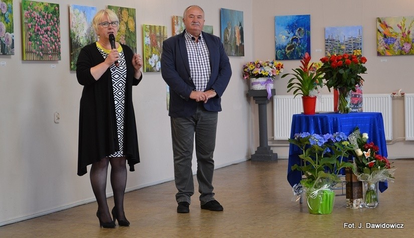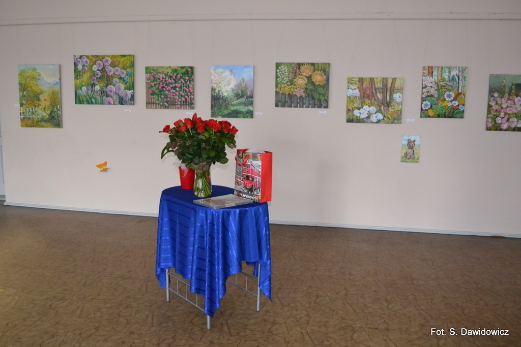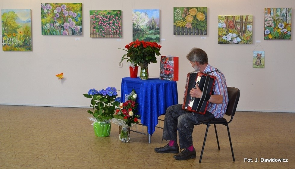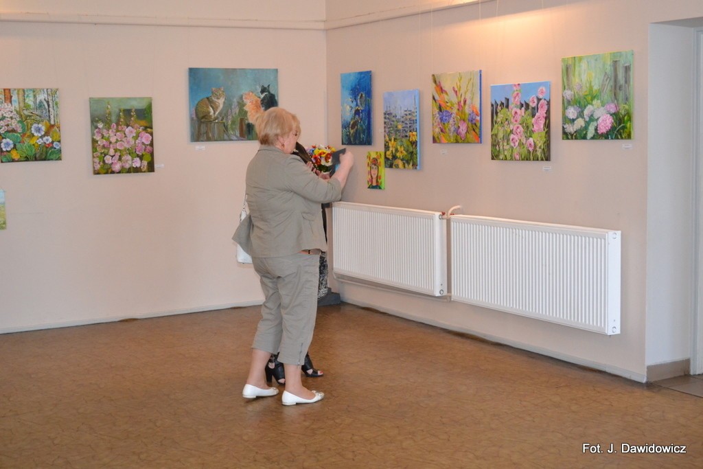 "Wernisaż w GOK w Nowej Wsi Lęborskiej w miniony piątek był jak zwykle bardzo udany, zarówno z uwagi na gości, którzy dopisali, artystów, którzy stawili się prawie w komplecie, popis akordeonisty, czas na wręczanie dyplomów i kwiatów, życzenia, bogaty słodki bufet, a przede wszystkim na samą ekspozycję prac poplenerowych.