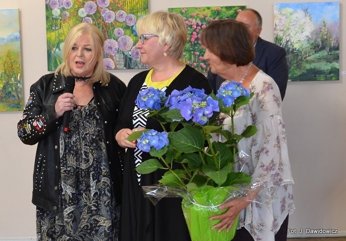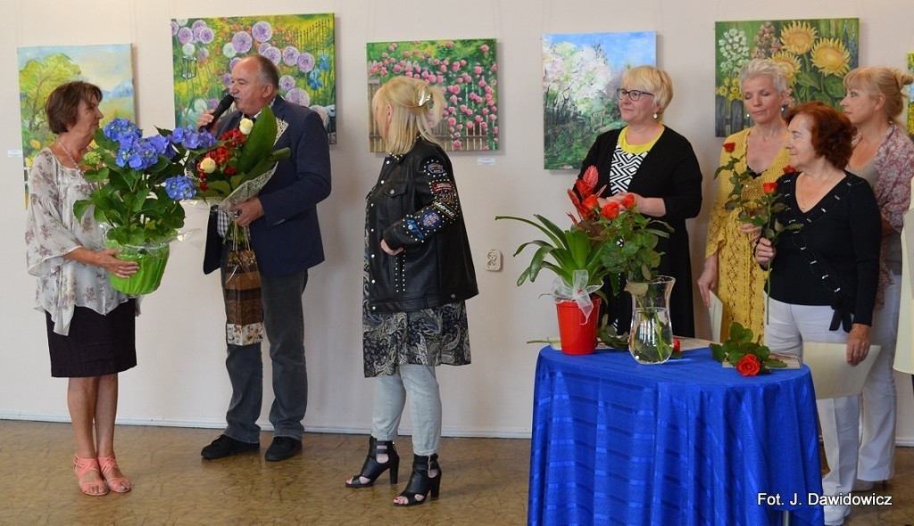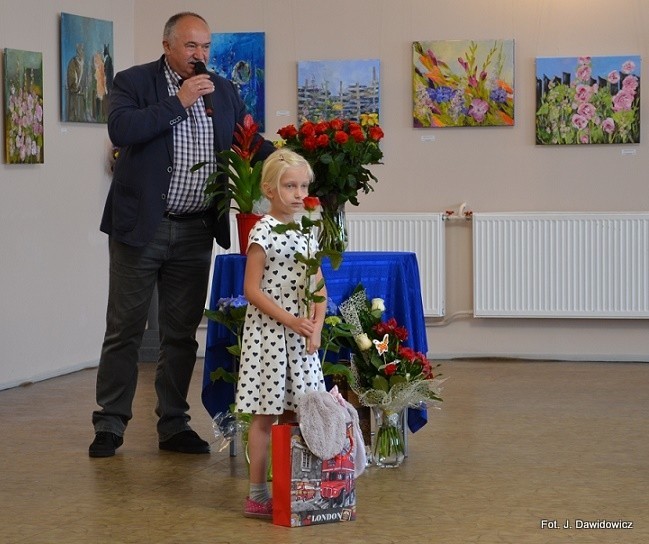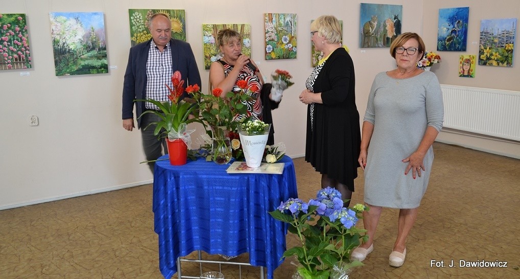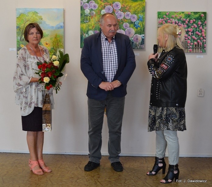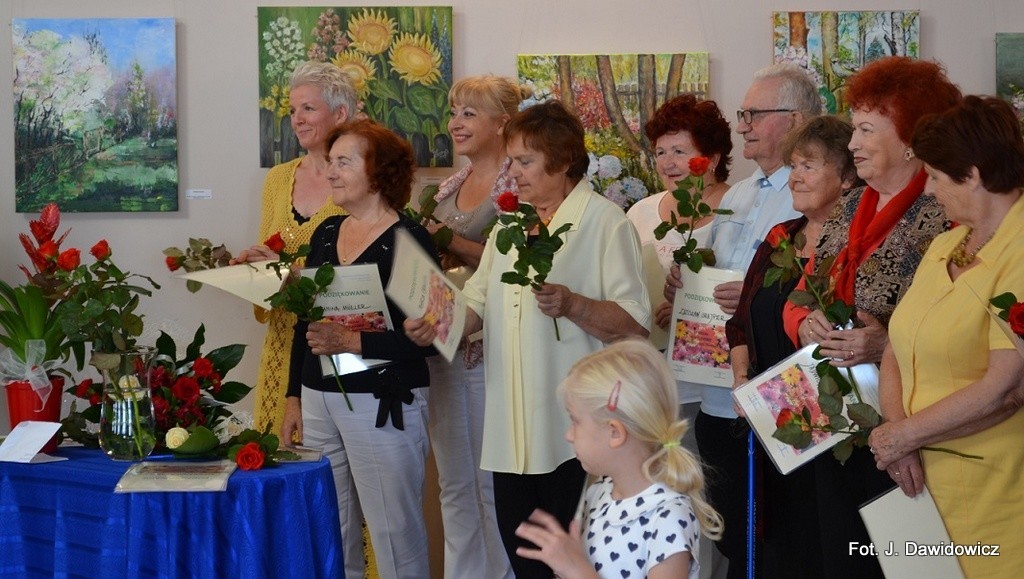 Dyplomy wręczały: Renata Palczewska, radna gminy Nowa Wieś Lęborska i Stasia Dawidowicz, kurator wystawy, a pąsowymi różami obdarowywał artystów Krzysztof Pruszak, dyrektor GOK-u.