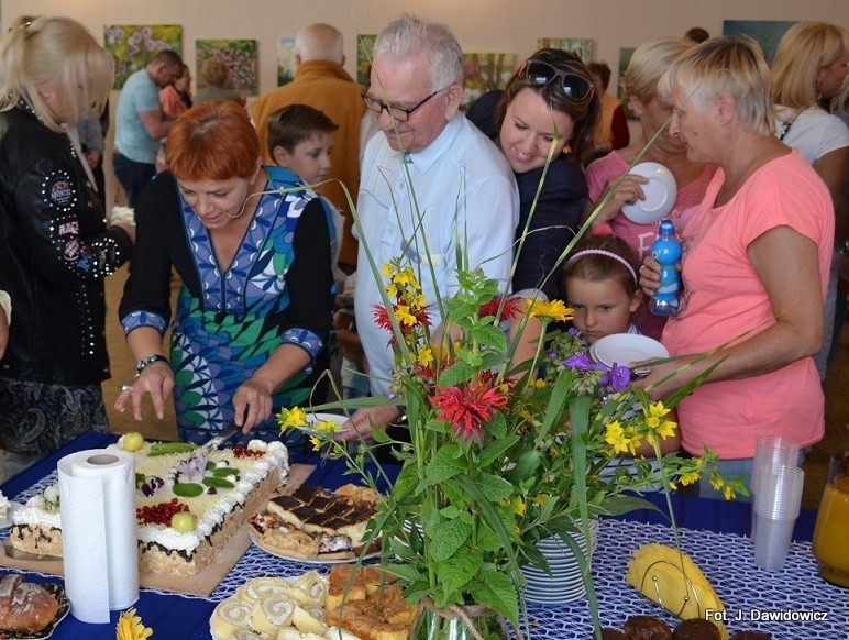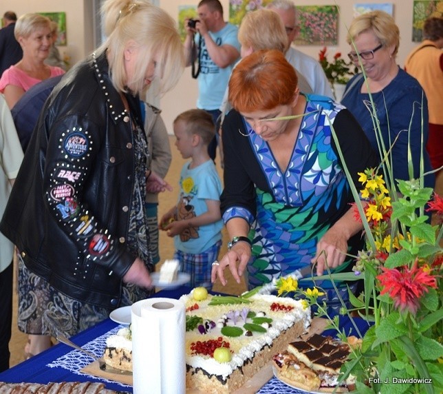 Smakowity tort ufundowała na te okazję pani Renata. Nie obyło się bez toastów, zawsze towarzyszących wernisażom.