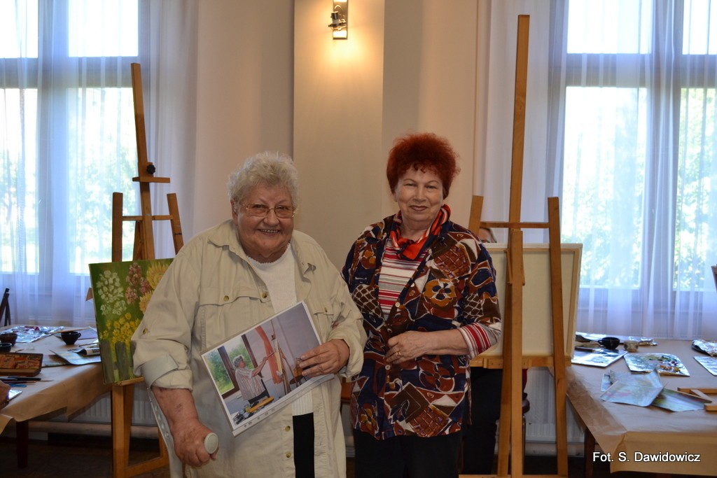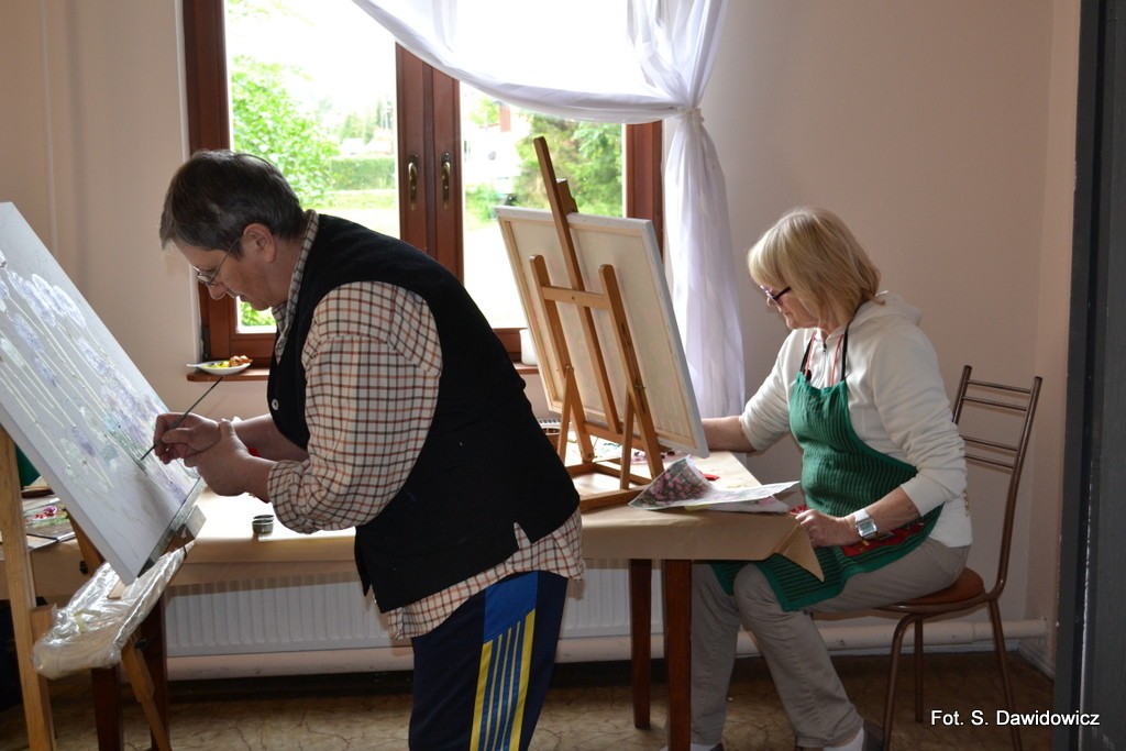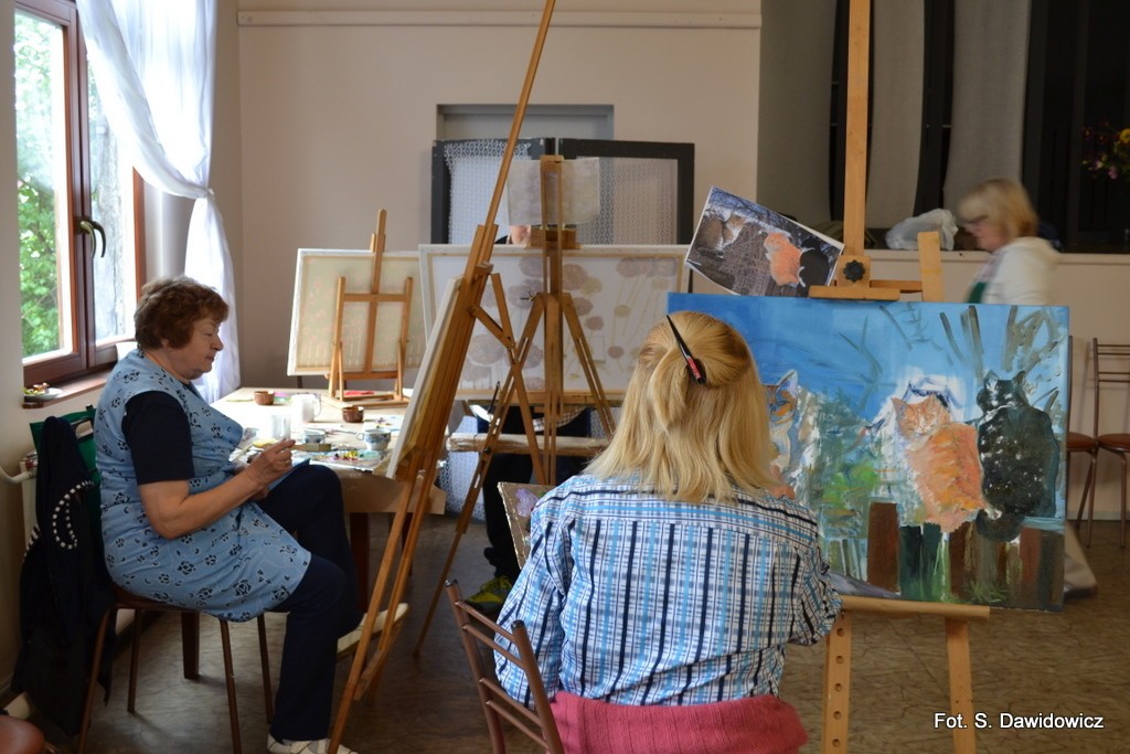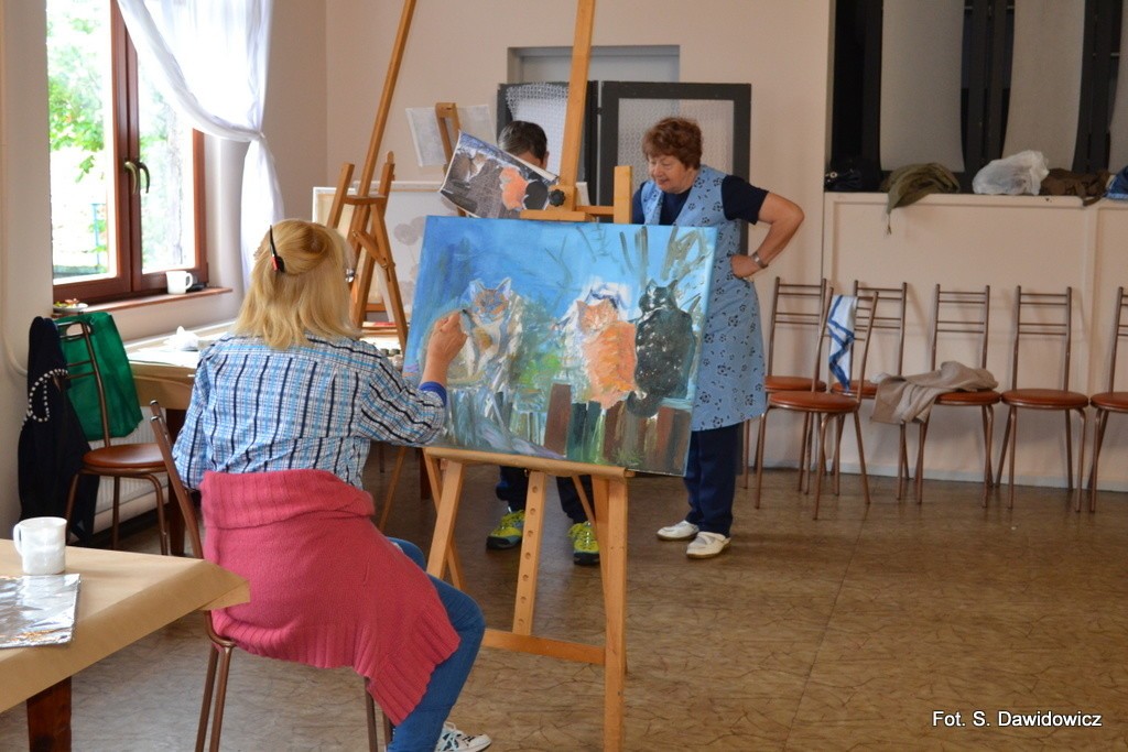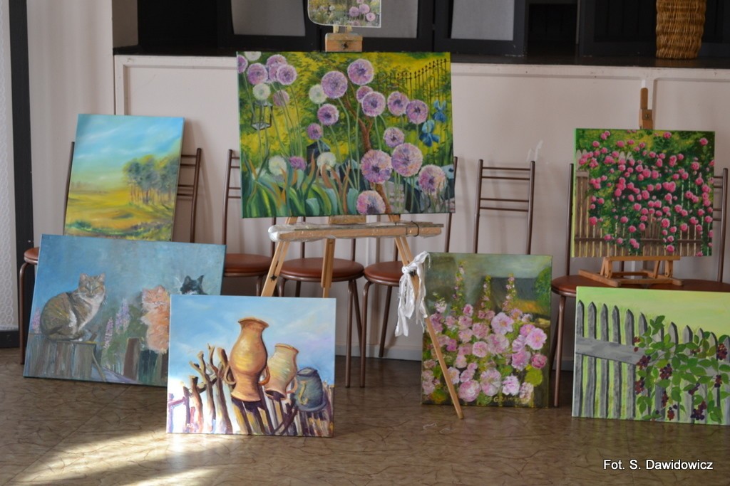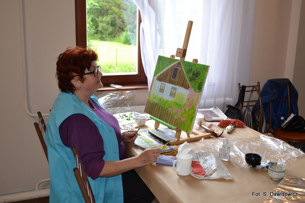 - Zależało mi nie tylko na ogrodach, ale najbardziej na płotach i kotach na tych płotach, na ogrodach z płotami – wyznaje Stanisława Dawidowicz, instruktor malarstwa w placówce i szefowa malarskiego koła tamże. – Na plenerze, jak co roku panowała atmosfera bardzo ciepła, rodzinna.