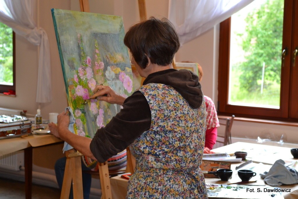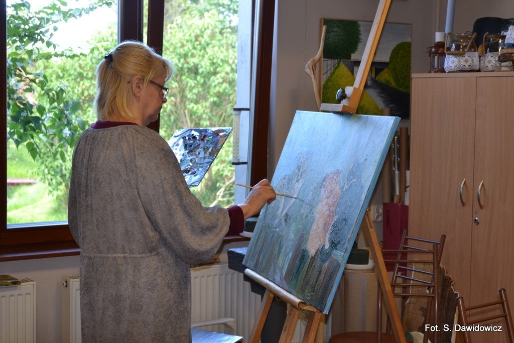 - Co do atmosfery to jak zwykle było bardzo sympatycznie, bardzo twórczo, budująco – mówi Grażyna Ramczyk. – Na takim plenerze podglądam nasze koleżanki, które są dla nas mistrzami, jak Ala Łaga. Marzę o tym, by się kiedyś przybliżyć do jej stylu malowania.