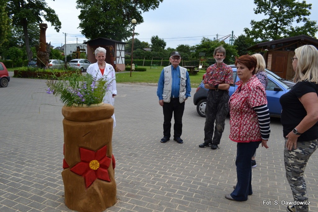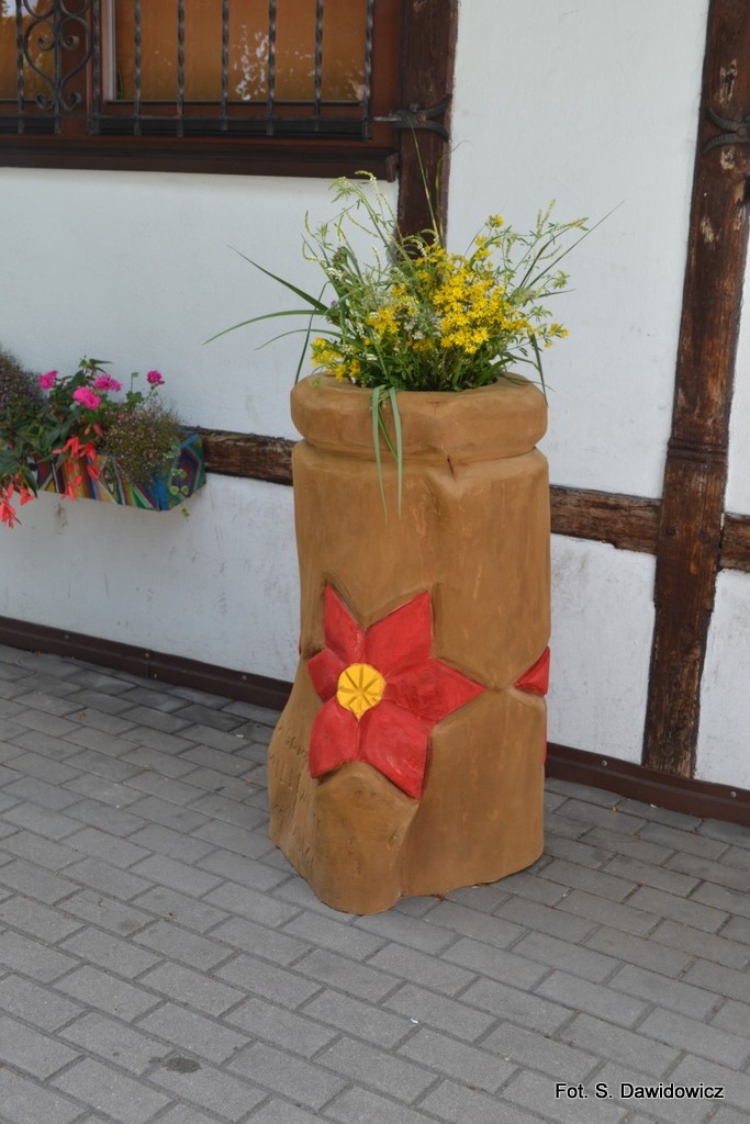 Z ciekawostek plenerowych: w tym roku pan Zdzisław, wszem i wobec znany ze swoich rzeźb, zarówno monumentalnych, jak wszelkich innych z pięknymi świątkami włącznie, wyrzeźbił następny, już trzeci gazon do dwóch wyeksponowanych w centrum wsi. Po zamknięciu wystawy eksponat zostanie tam przeniesiony.