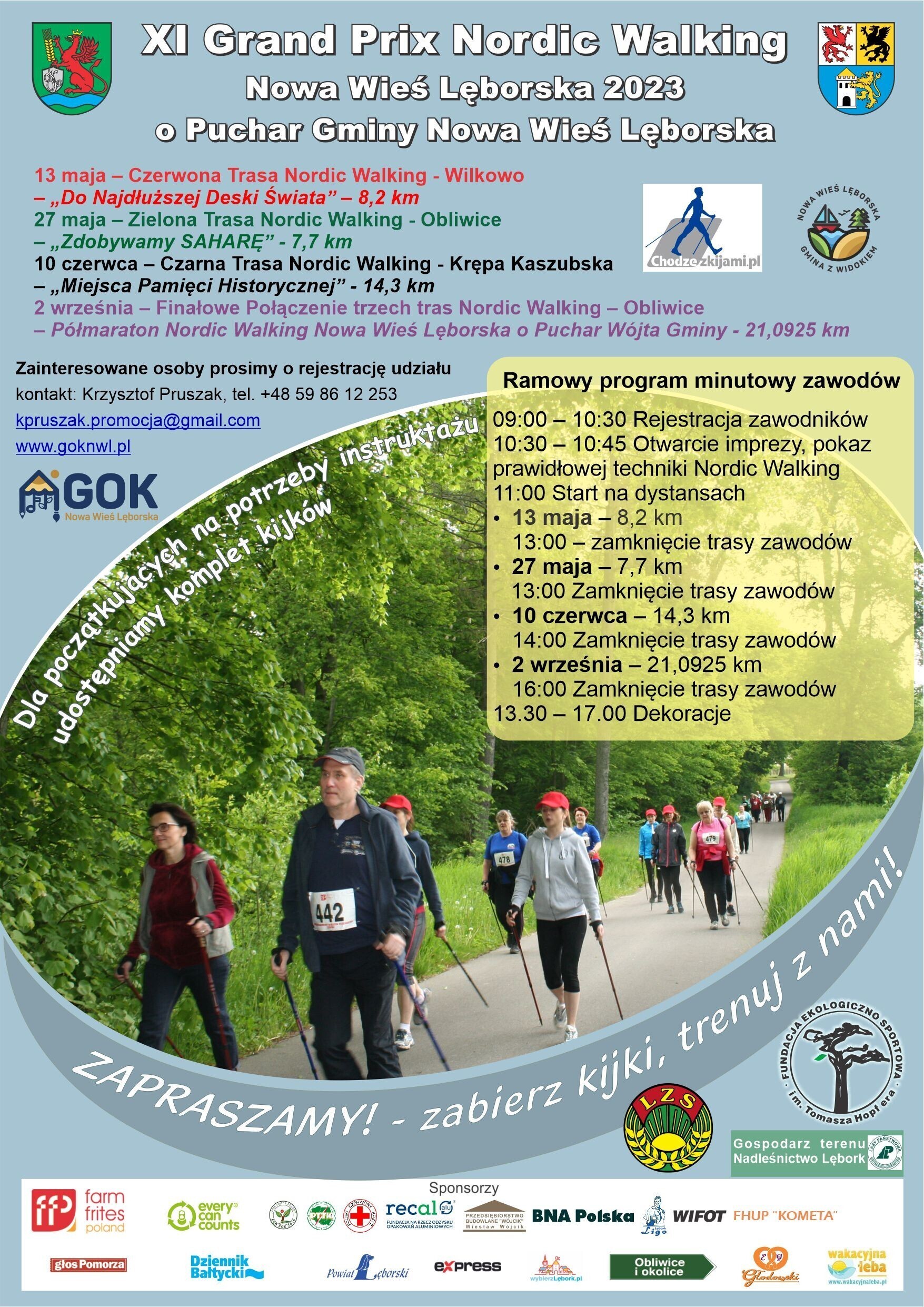 10:30 – 10:45 Otwarcie imprezy, pokaz prawidłowej techniki Nordic Walking
