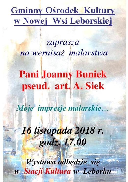 - Zapraszamy na wernisaż malarstwa Pani Joanny Buniek pseud. art. A. Siek