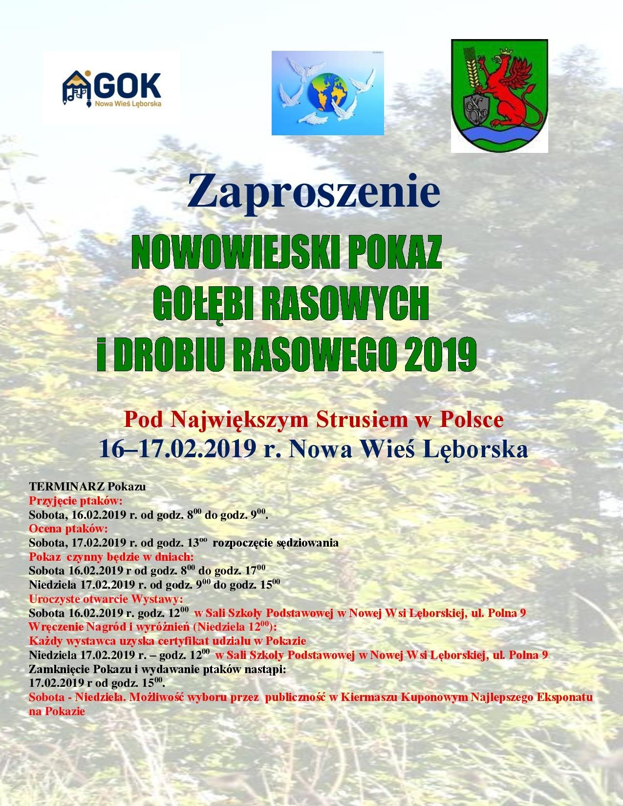 - Zapraszany na NOWOWIEJSKI POKAZ GOŁĘBI RASOWYCH I DROBIU RASOWEGO 2019
